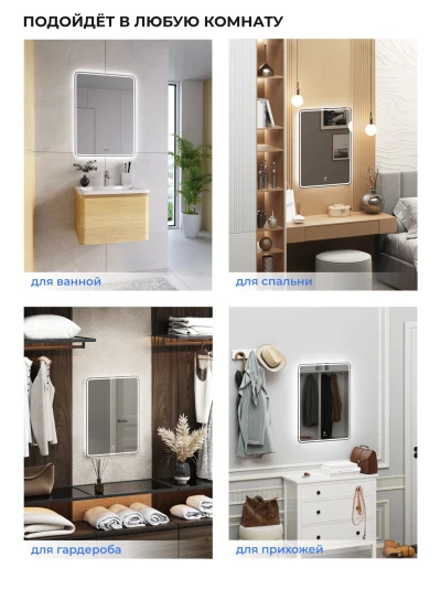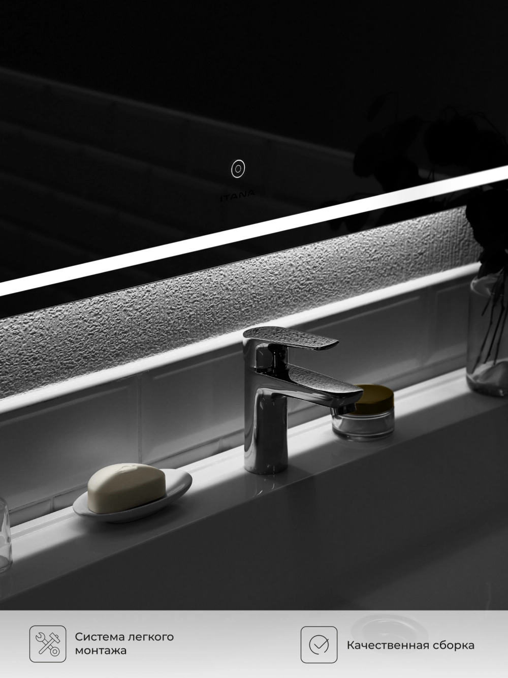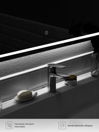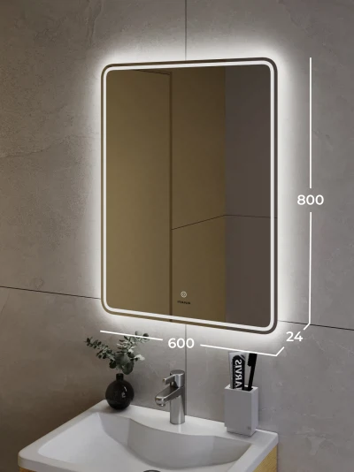 Зеркало с подсветкой из коллекции Line изготовлено из зеркального полотна толщиной 4 мм. Настенное зеркало - современная и лаконичная по дизайну модель с удобным сенсорным управлением подсветки. При изготовлении используется светодиодная лента с плотностью диодов 120 шт./м и мощностью 9,6 Вт/м, цветовая температура 6000К (холодный свет) создающая мягкое и равномерное свечение по периметру зеркала. Зеркало с подсветкой может использоваться в помещениях с повышенной влажностью воздуха. В комплекте предусмотрен настенный крепеж. Для точного выбора зеркала с подсветкой в ванную комнату рекомендуем обратиться к схеме замеров, которая находится на фото в карточке товара, размеры изделия могут отличаться +/-1 см в связи со спецификой производства. Настенное зеркало с подсветкой в ванную доставляется в предварительно собранном виде, надежно упаковано.