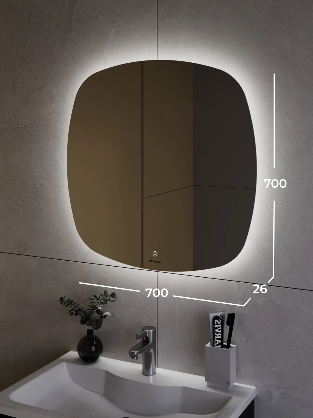 Зеркало из коллекции Kelly 70 не только станет стильным акцентом для вашей ванной комнаты, но и обеспечит максимальную функциональность и удобство в использовании. Это подвесное зеркало для ванной имеет размеры 700х24х700 мм, что позволяет идеально вписаться как в малогабаритные помещения, так и в просторные ванные комнаты. Настеннное зеркалов ванную изготовлено из высококачественных материалов, что гарантирует долгий срок службы и сохранность внешнего вида на протяжении многих лет. Это современное и лаконичное по дизайну зеркало для ванной с удобным сенсорным управлением подсветки. Цветовая температура 6000К (холодный свет) создающая мягкое и равномерное свечение по периметру зеркала. Зеркало с подсветкой может использоваться в помещениях с повышенной влажностью воздуха. В комплекте предусмотрен настенный крепеж. Для точного выбора зеркала в ванную комнату рекомендуем обратиться к схеме замеров, которая находится на фото в карточке товара, размеры изделия могут отличаться +/-1 см в связи со спецификой производства. Настенное зеркало в ванную с подсветкой доставляется в предварительно собранном виде, надежно упаковано.