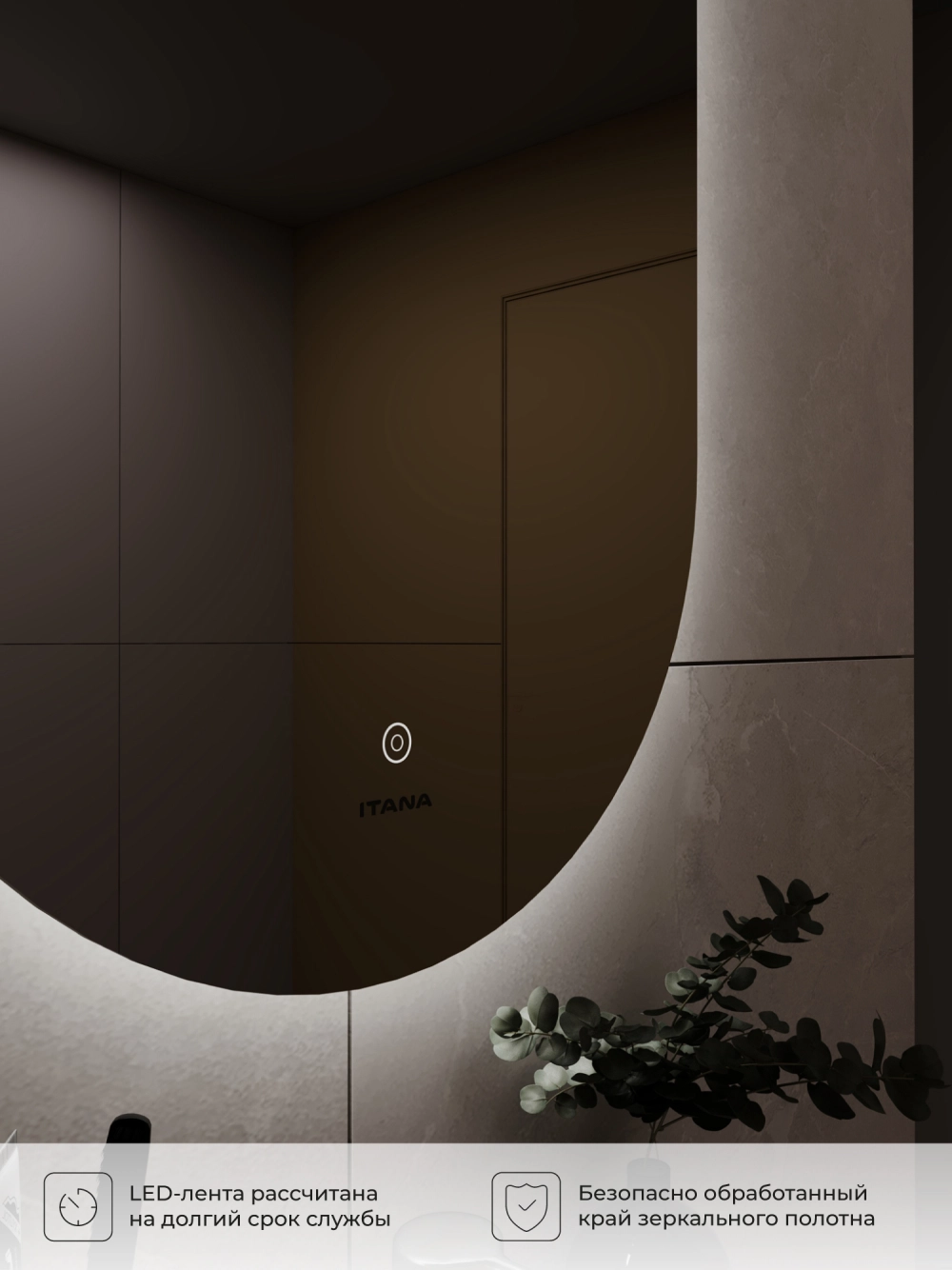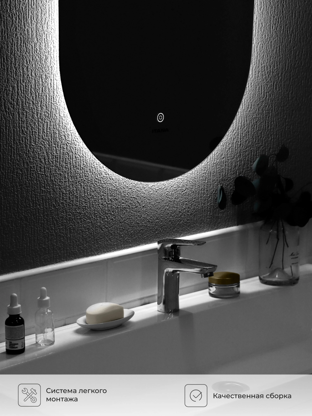 Зеркало с подсветкой Итана Oreol изготовлено из зеркального полотна толщиной 4 мм. Край зеркала в ванную обработан евро-кромкой. Настенное зеркало в ванную - современная и лаконичная по дизайну модель с удобным сенсорным управлением подсветки. При изготовлении используется светодиодная лента с плотностью диодов 120 шт./м и мощностью 9,6 Вт/м, цветовая температура 6000К (холодный свет) создающая мягкое и равномерное свечение по периметру зеркала. Подсветка рассчитана на 25 000 часов работы в непрерывном режиме. Зеркало с подсветкой может использоваться в помещениях с повышенной влажностью воздуха. В комплекте предусмотрен настенный крепеж. Для точного выбора зеркала с подсветкой в ванную комнату рекомендуем обратиться к схеме замеров, которая находится на фото в карточке товара, размеры изделия могут отличаться +/-1 см в связи со спецификой производства. Настенное зеркало с подственной для ванной доставляется в предварительно собранном виде, надежно упаковано.
