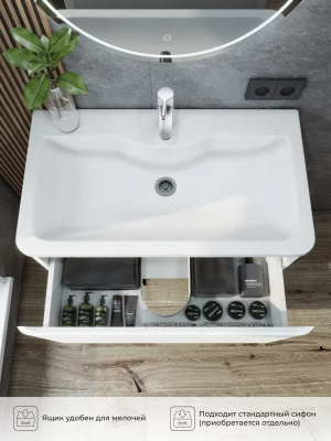 Тумбы под раковину шириной 70-80 см подойдут для просторных ванных комнат, где важна не только функциональность, но и эстетика. Такие модели обеспечивают много места для хранения и могут стать акцентом интерьера. В нашем ассортименте – тумбы с разными вариантами отделки и удобной фурнитурой. Выбирайте лучшее для вашей ванной!
