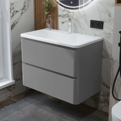 Тумбы с раковиной шириной 70-80 см обеспечивают дополнительное пространство для хранения и удобство использования. Они подходят для больших ванных комнат, где важен комфорт и стиль. В нашем каталоге представлены модели с современным дизайном и надежной фурнитурой.
