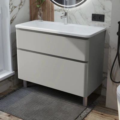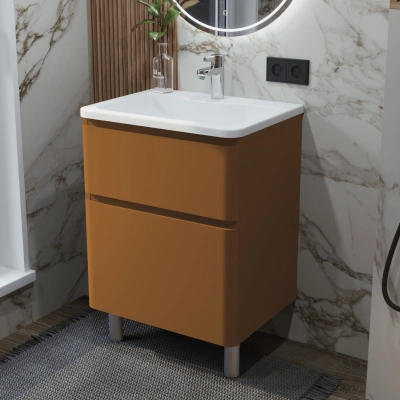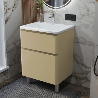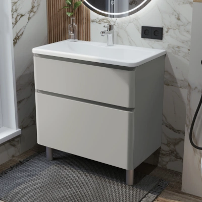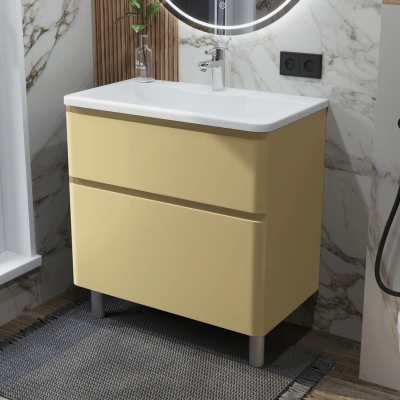 Вы можете выбрать тумбу с глянцевым или матовым покрытием. Глянцевые фасады придают ванной комнате современный и элегантный вид, а матовые — создают уют и сдержанность.