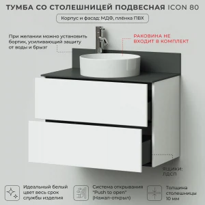Тумба с раковиной и столешницей для ванной - это не просто мебель, а полноценная система хранения, которая помогает организовать пространство. Выдвижные ящики позволяют аккуратно разместить все необходимые косметические средства и аксессуары. А столешница добавит удобство пользования тумбой. Благодаря разнообразию моделей - от напольных до подвесных; вы легко подберёте вариант, идеально подходящий под размеры вашей ванной комнаты.