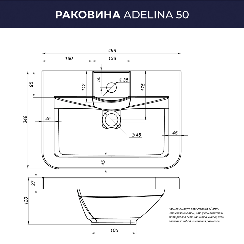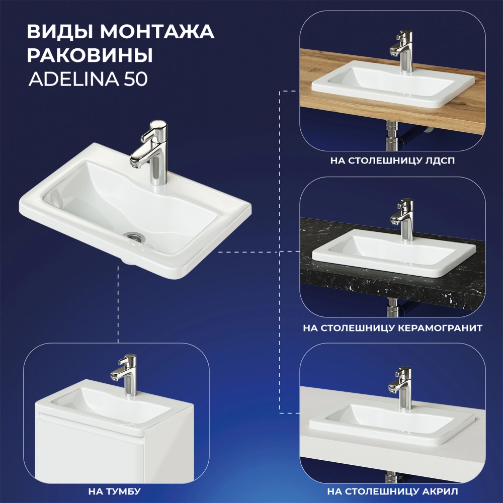 Раковина мебельная Итана Adelina 50 Белый глянец