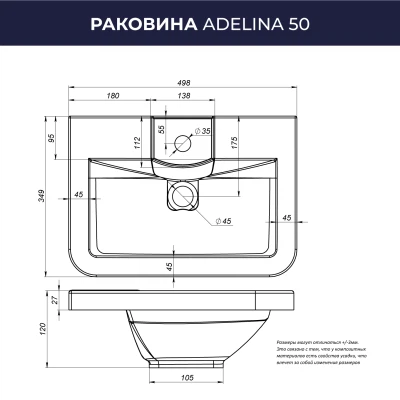 Раковина в ванную Итана Adelina 50 изготовлена из искусственного мрамора. Верхний слой Гелькоута образует декоративно защитное покрытие, не содержит вредных для здоровья человека веществ, экологически безопасный. Шумопоглощающая поверхность. Имеет центральное отверстие под смеситель и отверстия слива. Раковина может быть встроена на мебель, в столешницу и на подстолье. Раковина совместима с тумбой под раковину Итана Roberto 50. Раковина доставляется в надежной упаковке.
