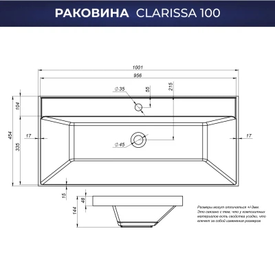Раковина мебельная Итана Clarissa 100 Белый глянец