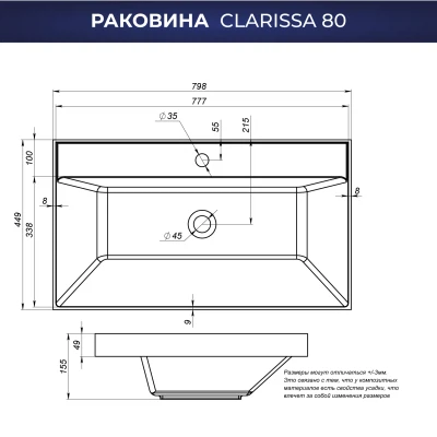 Раковина для ванной Итана Clarissa 80 изготовлена из искусственного мрамора. Верхний слой Гелькоута образует декоративно защитное покрытие. Не содержит вредных для здоровья человека веществ, экологически безопасный. Шумопоглощающая поверхность. Раковина может быть встроена на мебель, в столешницу и на подстолье. Раковина доставляется надежно упакована.
