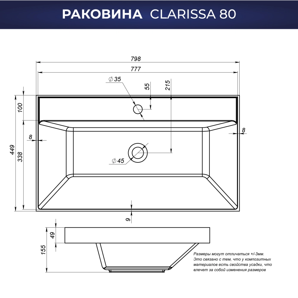 Раковина мебельная Итана Clarissa 80 Белый глянец
