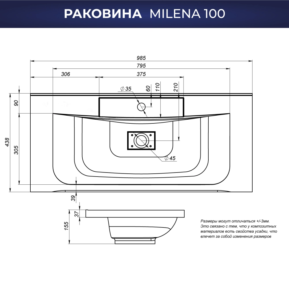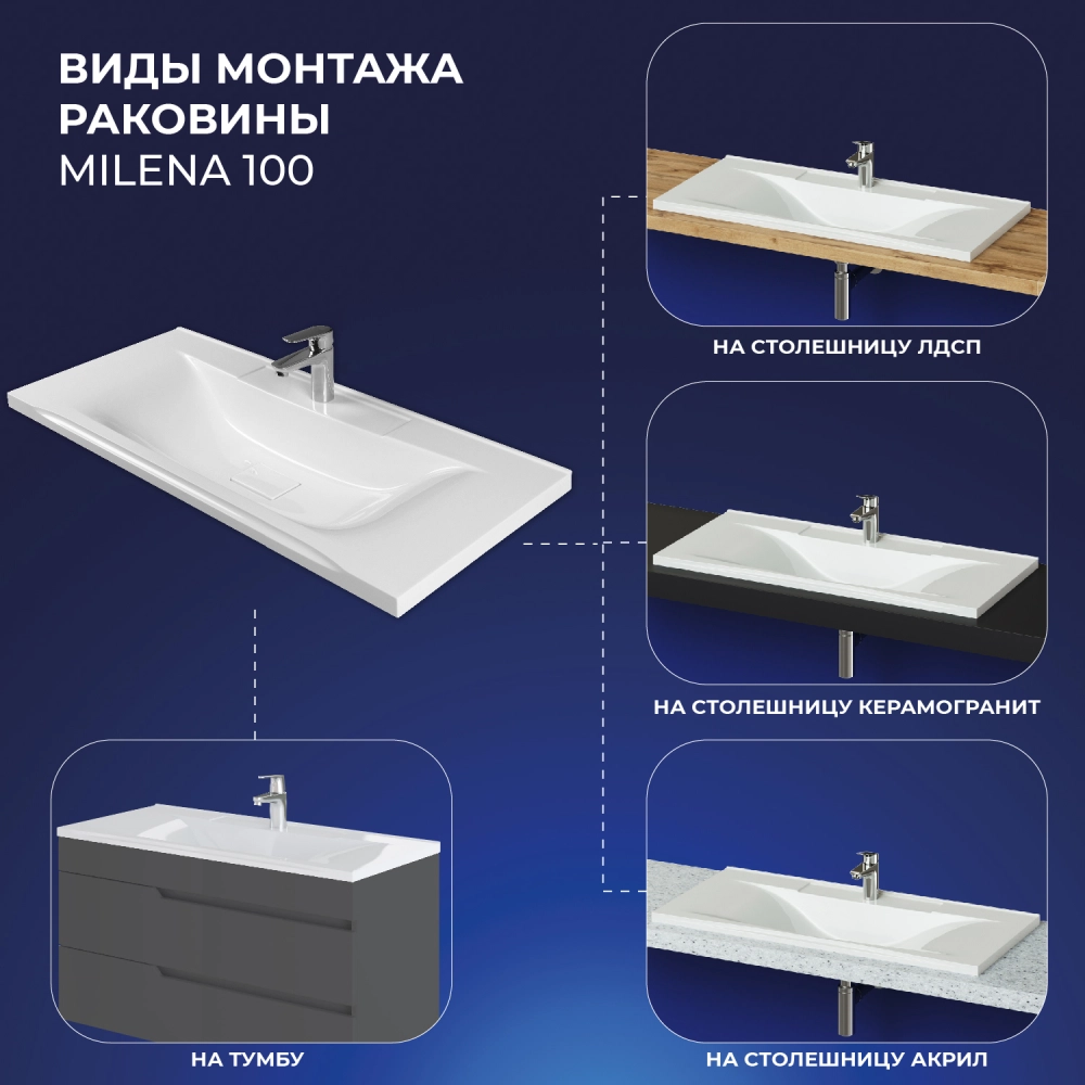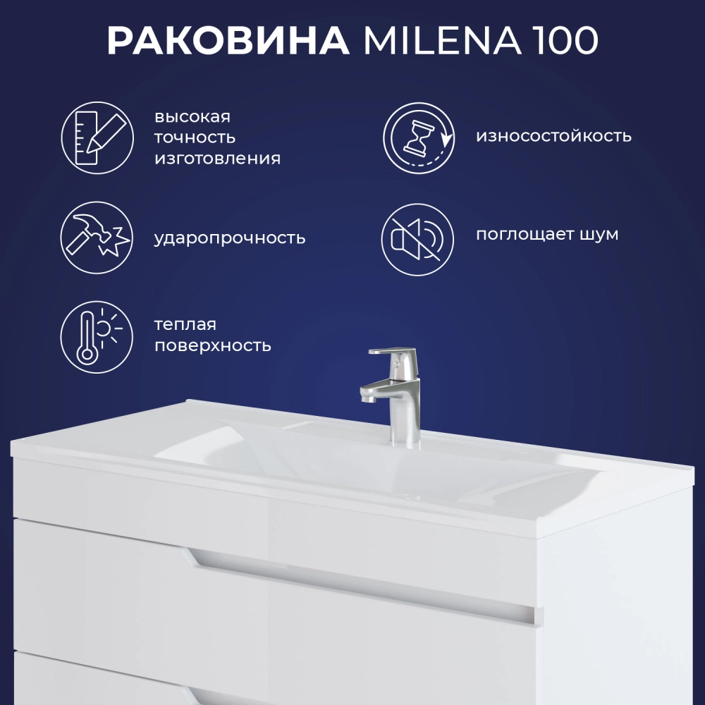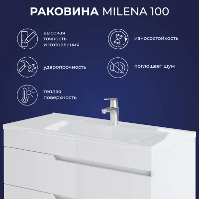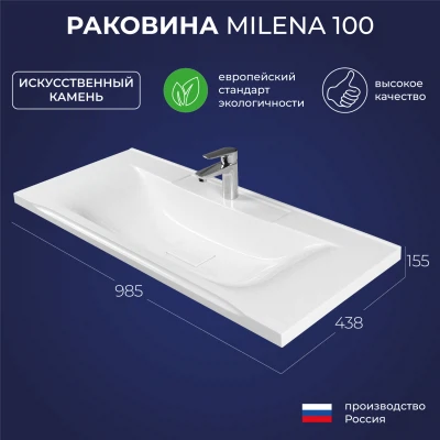 Раковина для ванной Итана Milena 100 изготовлена из искусственного мрамора. Верхний слой Гелькоута образует декоративно защитное покрытие. Не содержит вредных для здоровья человека веществ, экологически безопасный. Шумопоглощающая поверхность. Раковина может быть встроена на мебель, в столешницу и на подстолье. Совместима с тумбой под раковину Итана Kate 100. Раковина для ванной доставляется в надежной упаковке.