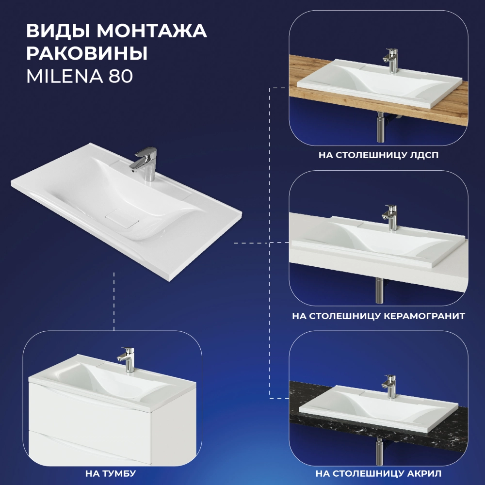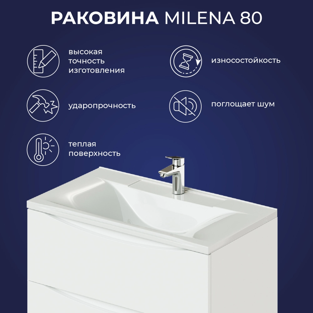 Раковина для ванной Итана Milena 80 изготовлена из искусственного мрамора. Верхний слой Гелькоута образует декоративно защитное покрытие. Не содержит вредных для здоровья человека веществ, экологически безопасный. Шумопоглощающая поверхность. Раковина может быть встроена на мебель, в столешницу и на подстолье. Совместима с тумбой под раковину Итана Kate 80. Раковина для ванной доставляется в надежной упаковке.