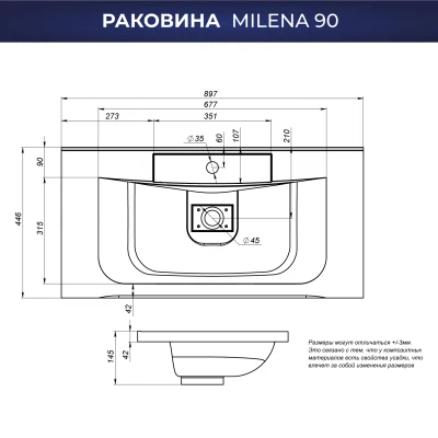Раковина для ванной Итана Milena 90 изготовлена из искусственного мрамора. Верхний слой Гелькоута образует декоративно защитное покрытие. Не содержит вредных для здоровья человека веществ, экологически безопасный. Шумопоглощающая поверхность. Раковина может быть встроена на мебель, в столешницу и на подстолье. Раковина для ванной доставляется в надежной упаковке.