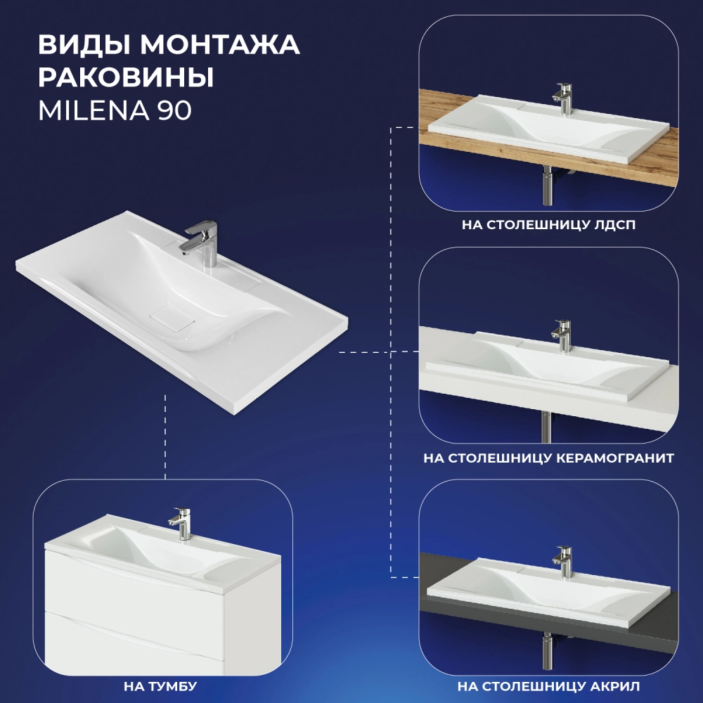 Раковина мебельная Итана Milena 90 Белый глянец