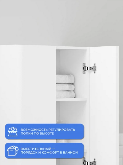 Пенал в ванную из коллекции Роберто 60 в стиле модерн с удобной организацией внутреннего пространства шкафов. Шкаф-пенал поможет создать комфортные условия в ванной комнате. Благодаря его компактным размерам 600х300х1000 и настенному крепежу он занимает немного места и надежно закрепляется. Пенал в ванную изготовлен из МДФ и покрыт ПВХ пленкой, что обеспечивает ему привлекательный внешний вид, а также износостойкость и долговечность. Качественная фурнитура с доводчиками обеспечивает легкое открывание и плавное закрывание дверок. Внутри пенала для ванной полки, где можно рационально распределить и разместить все необходимые вещи для ванной комнаты. Полки пенала легко переставить, возможно регулировать расстояние их между собой. Для точного выбора пенала в ванную комнату рекомендуем обратиться к схеме замеров, которая находится на фото в карточке товара. Размеры изделия могут отличаться +/-1 см в связи со спецификой производства. Дополнить комплект можно тумбой с раковиной и зеркалом из коллекции Роберто. Изделия коллекции качественные, функциональные и органически впишутся в популярные и современные интерьерные решения для ванных комнат.