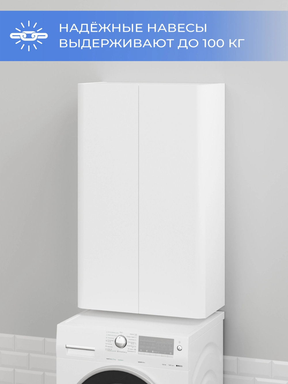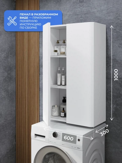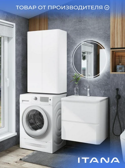 Шкаф над стиральной машиной ИТАНА Роберто 60, подвесной, Белый глянец