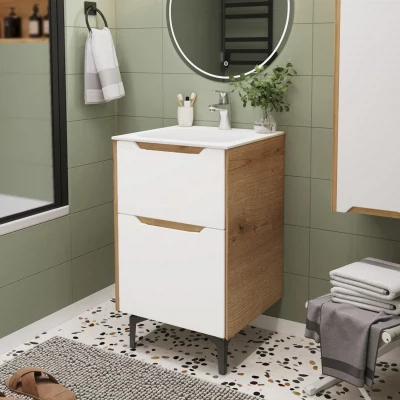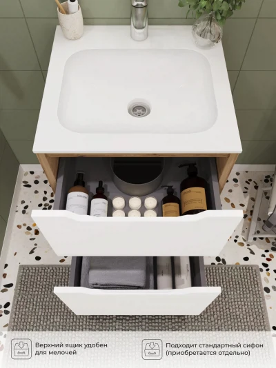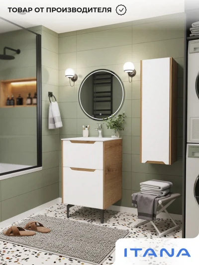 Тумба под раковину напольная Итана Nill 50 с выдвижными ящиками Белый глянец