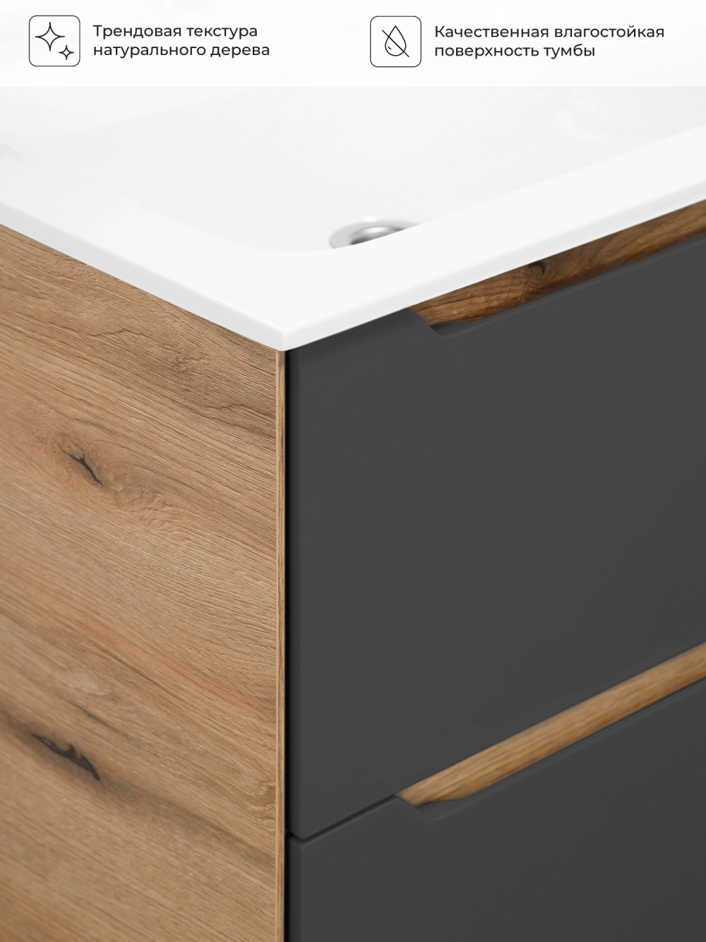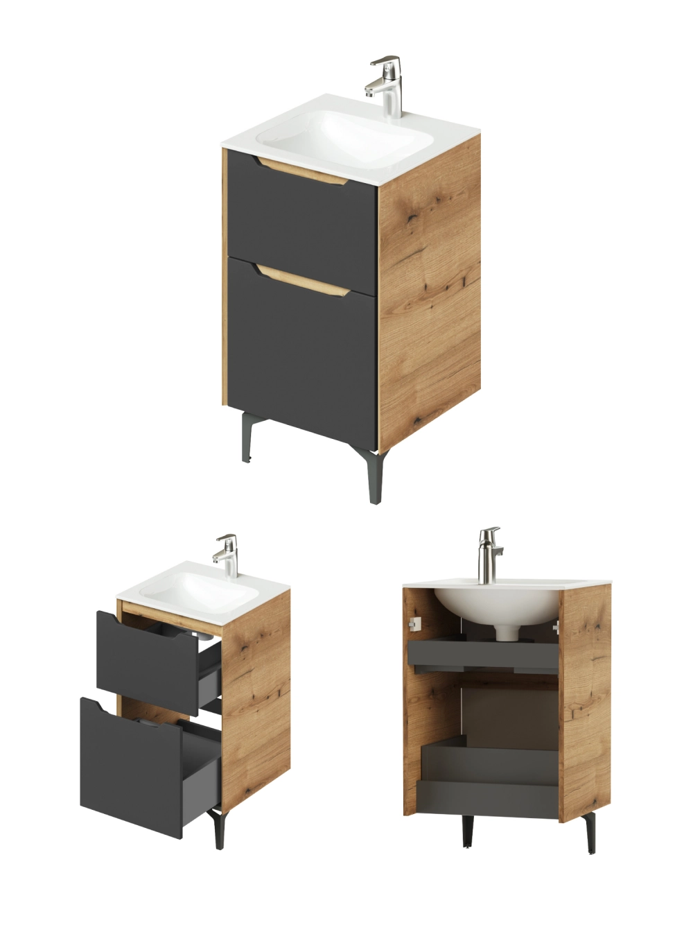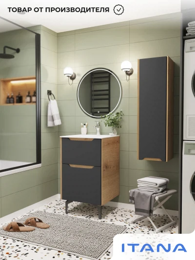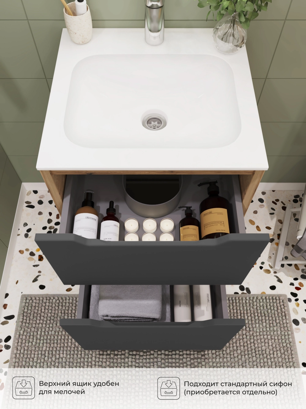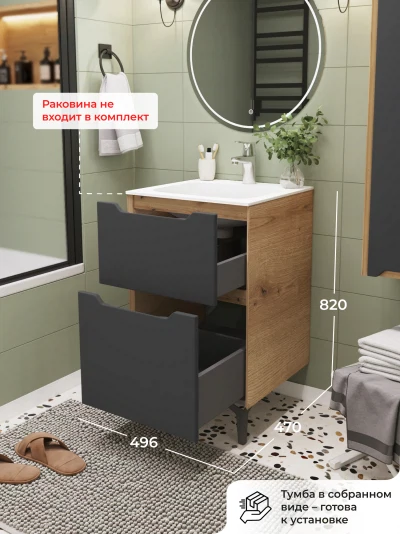 Тумба под раковину напольная Итана Nill 50 с выдвижными ящиками Графит