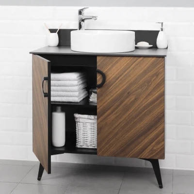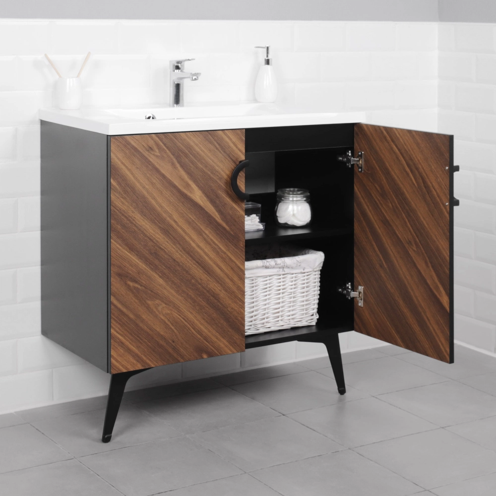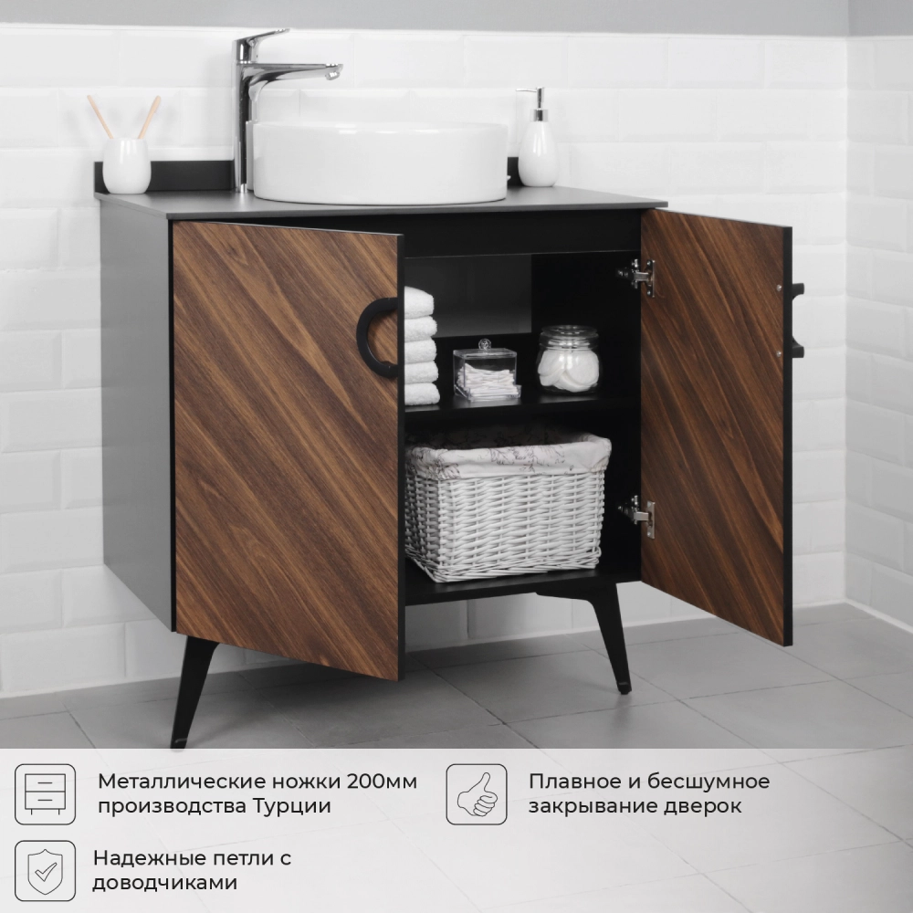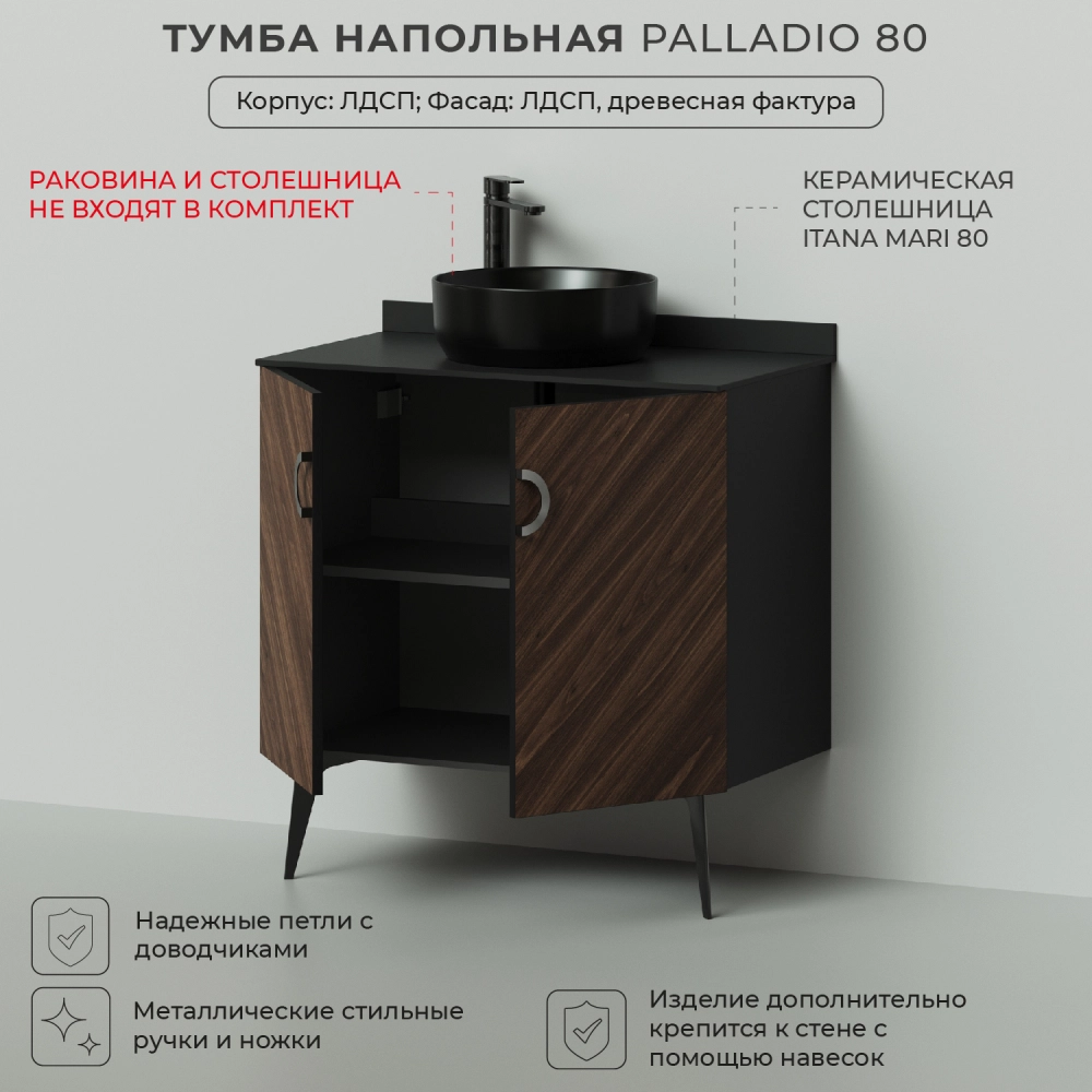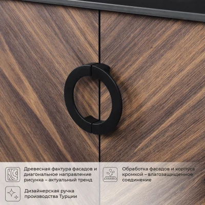 Напольная тумба под раковину из коллекции Palladio выполнена в модных декорах. Технология производства позволила сделать элементы мебели устойчивыми к влаге. Качественная фурнитура с доводчиками обеспечивает легкое открывание и плавное закрывание дверей. Дизайнерские металлические ручки с покрытием не только декоративный элемент, но и удобное решение - фасады остаются чистыми при постоянном открывании и закрывании. Вырез под сифон универсальный, для любого типа. Благодаря своей конструкции тумба в ванную обеспечивает удобный доступ к раковине и позволяет скрыть коммуникации. Тумба под раковину в ванную оснащена удобным шкафчиком для хранения, что позволяет разместить всё необходимое под рукой. Для точного выбора тумбы под раковину в ванную комнату рекомендуем обратиться к схеме замеров, которая находится на фото в карточке товара, размеры изделия могут отличаться +/-1 см в связи со спецификой производства.