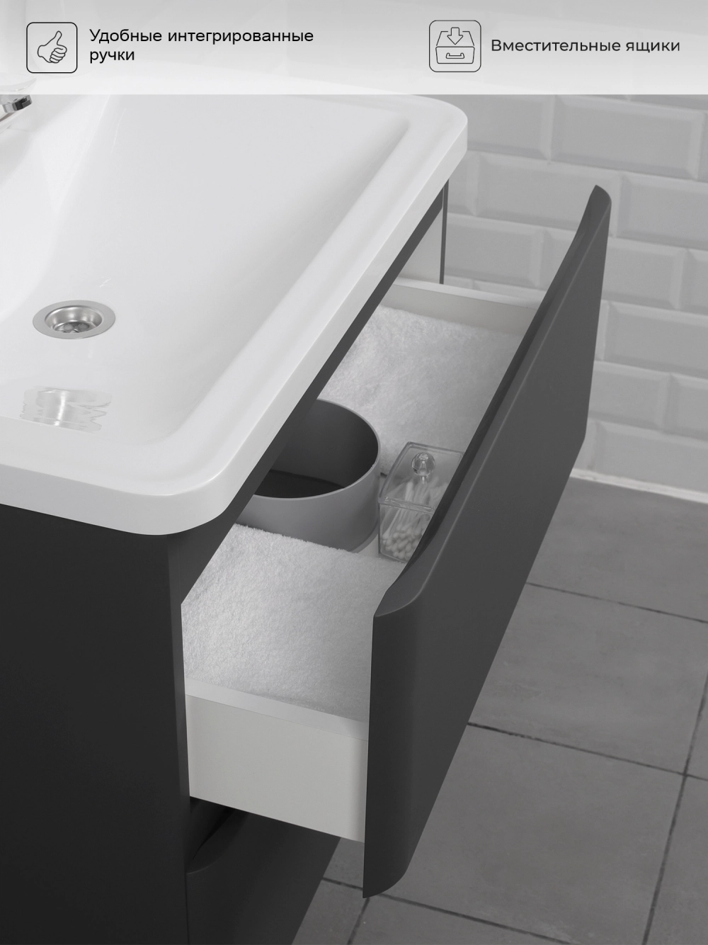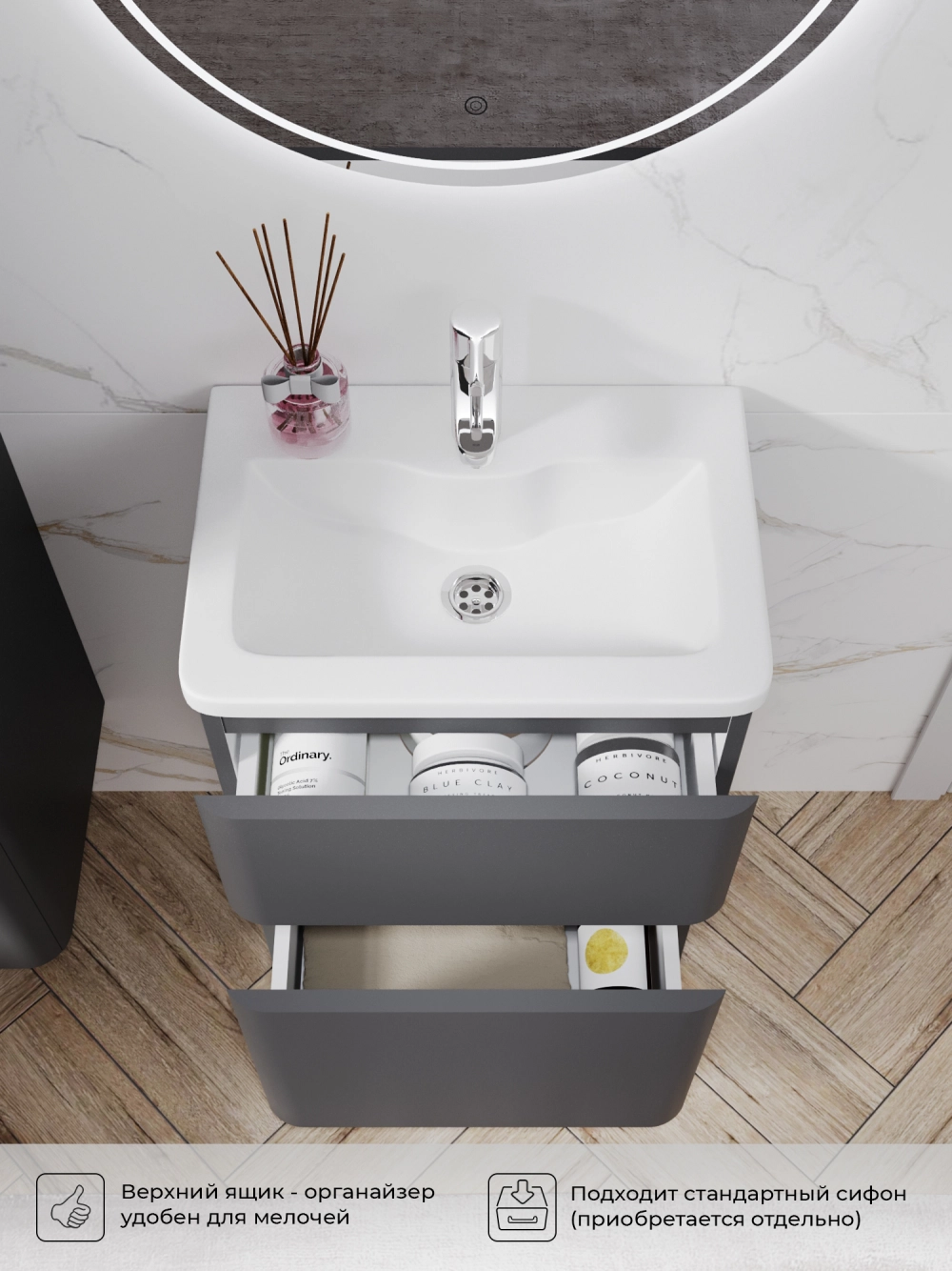 Тумба под раковину напольная Итана Roberto 50 с выдвижными ящиками Графит