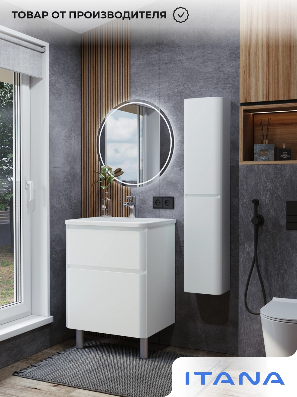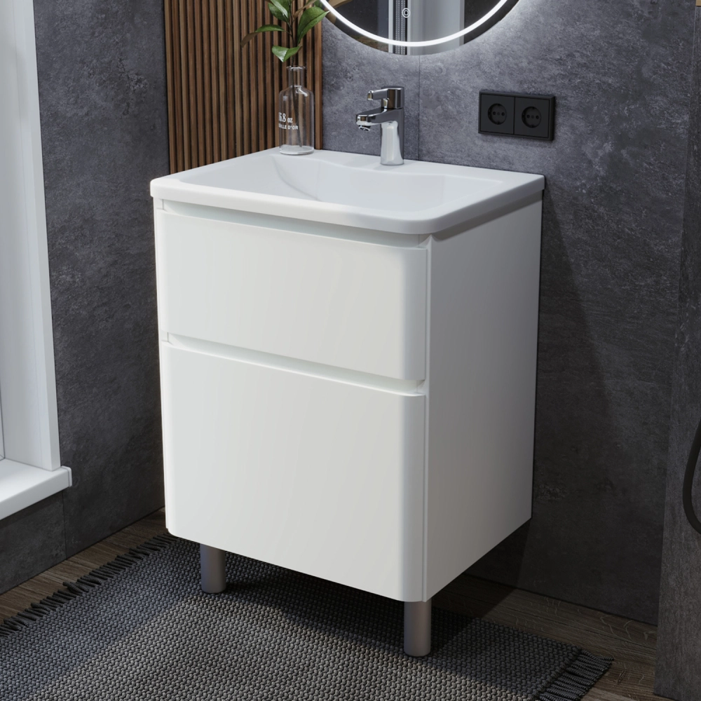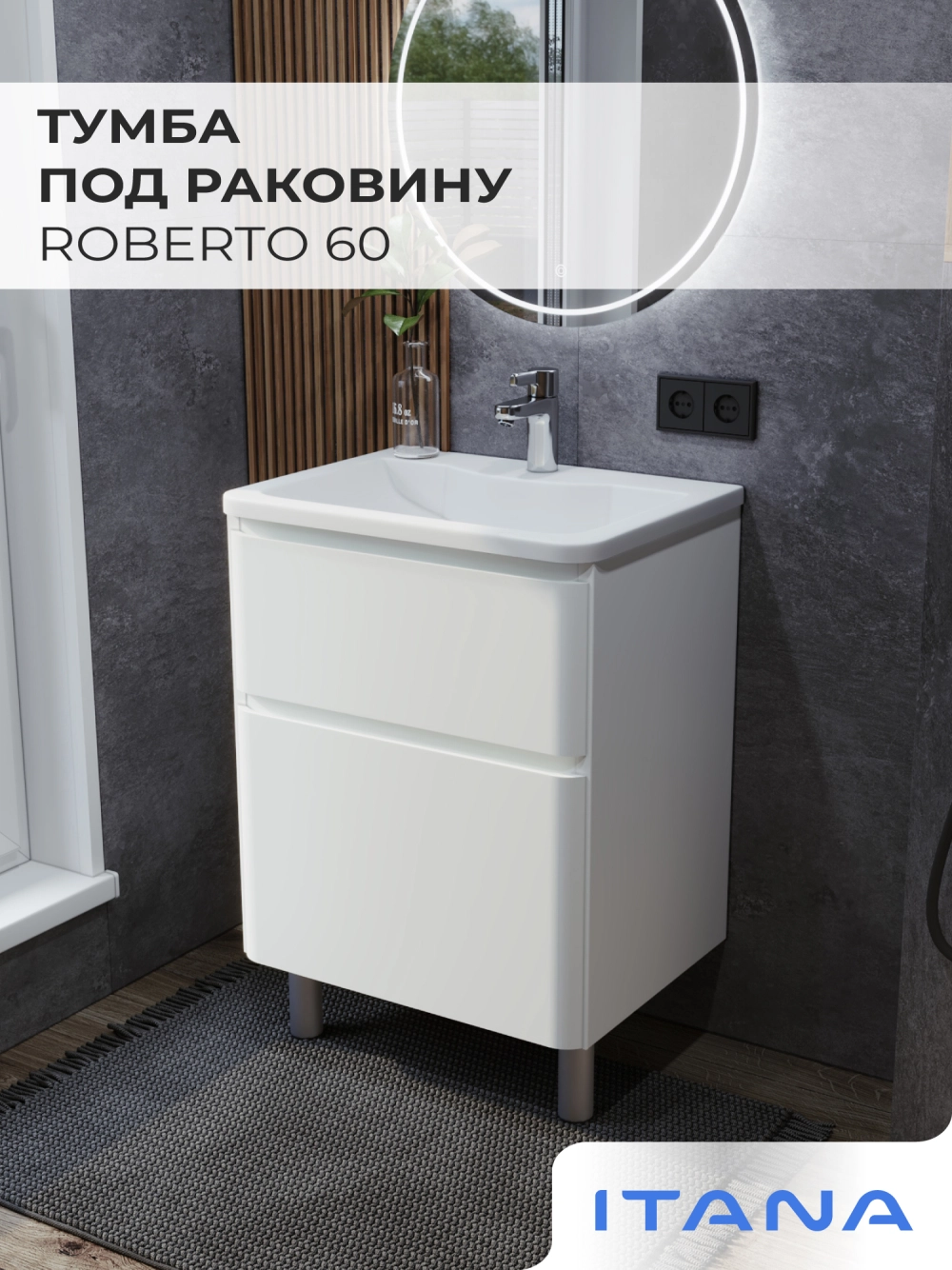 Тумба под раковину напольная Итана Roberto 60 с выдвижными ящиками Эмаль Белый глянец