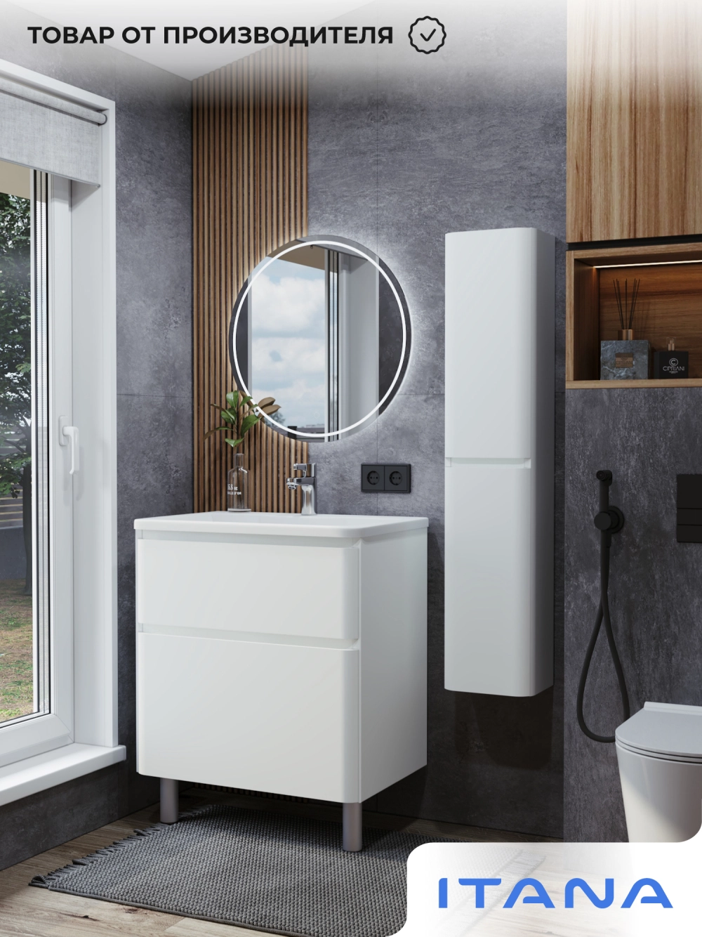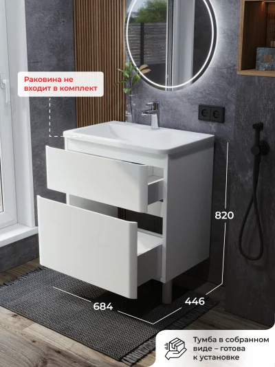 Тумба под раковину напольная Итана Roberto 70 с выдвижными ящиками Эмаль Белый глянец