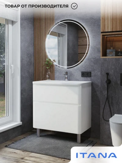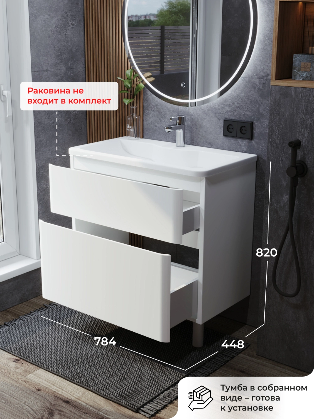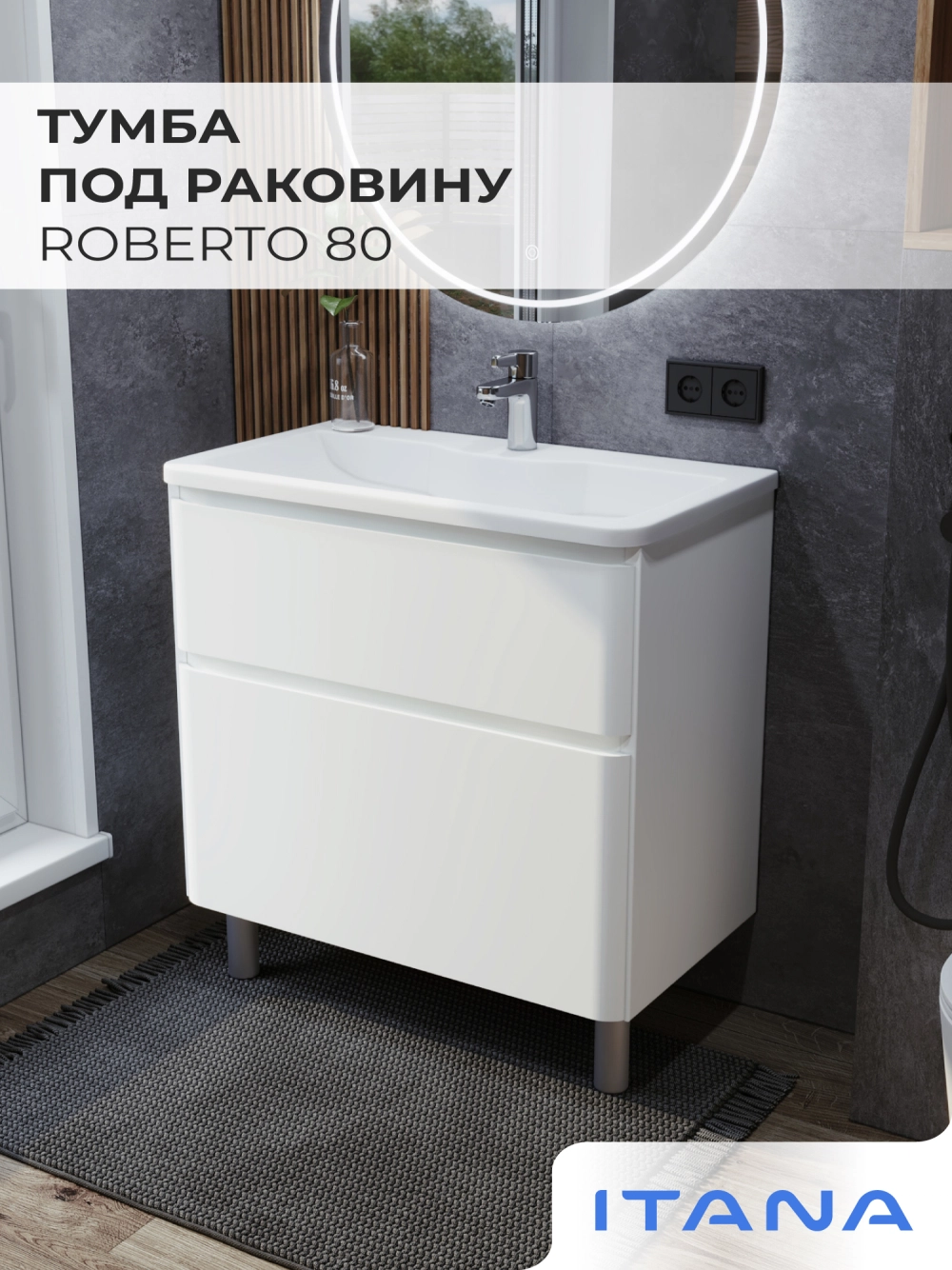 Тумба под раковину напольная Итана Roberto 80 с выдвижными ящиками Белый глянец