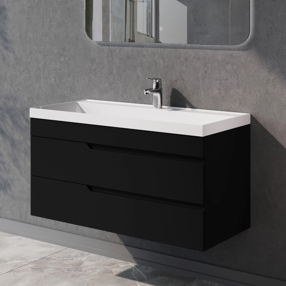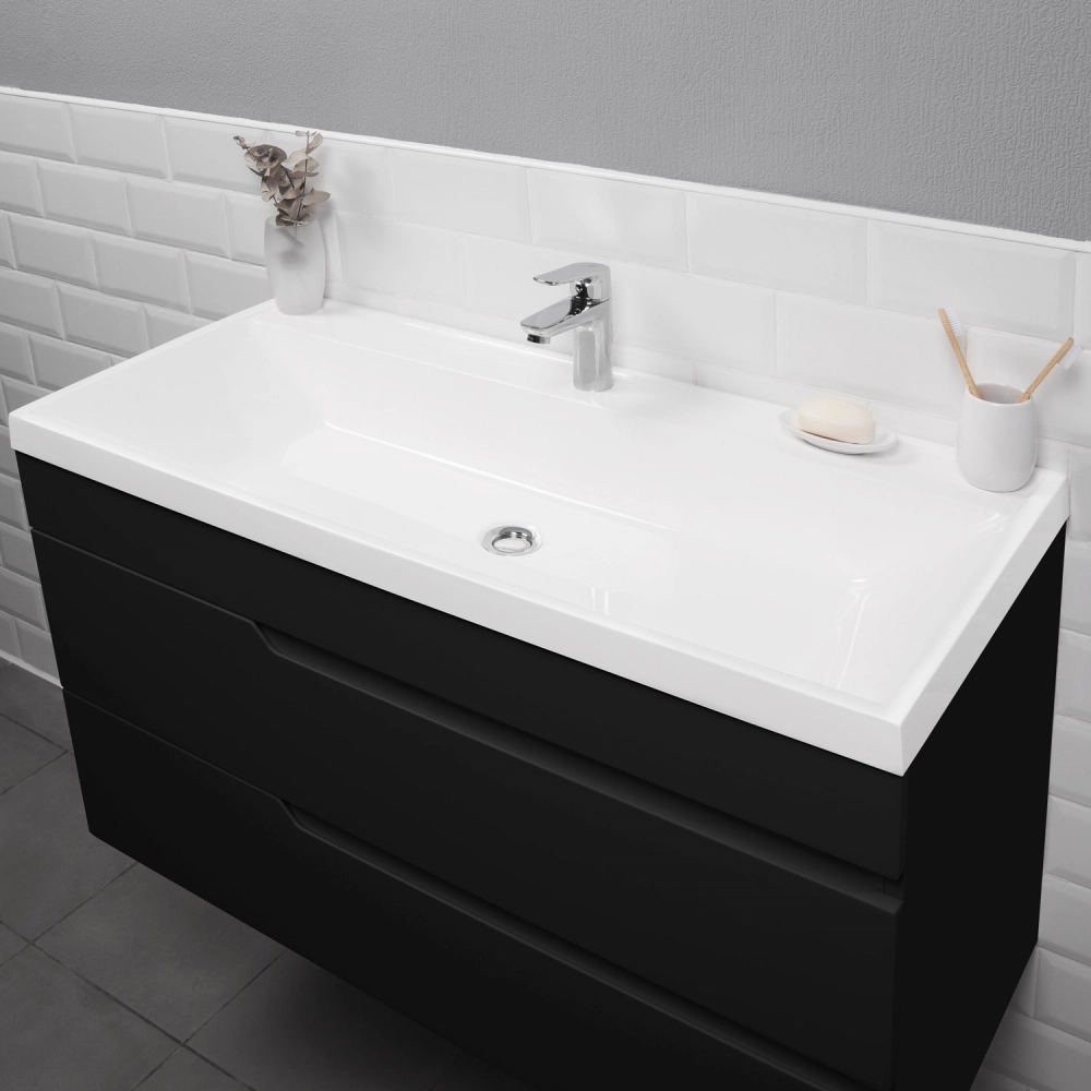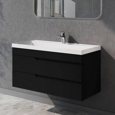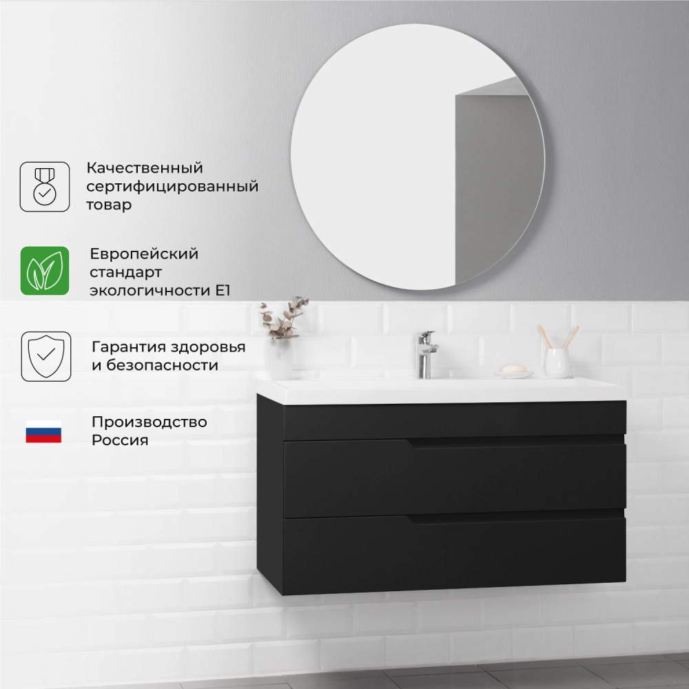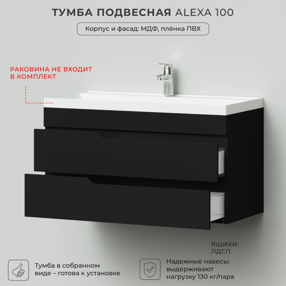 Тумба под раковину подвесная Итана Alexa 100 с выдвижными ящиками Черный