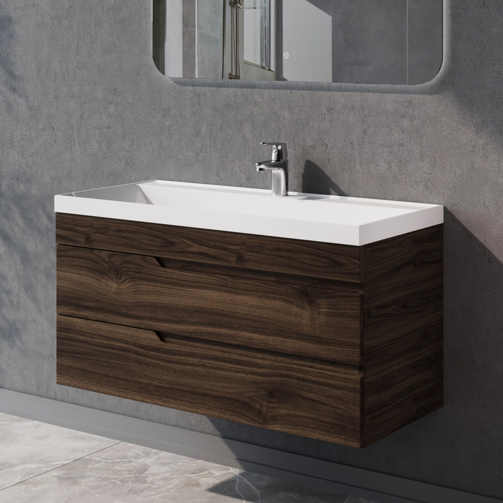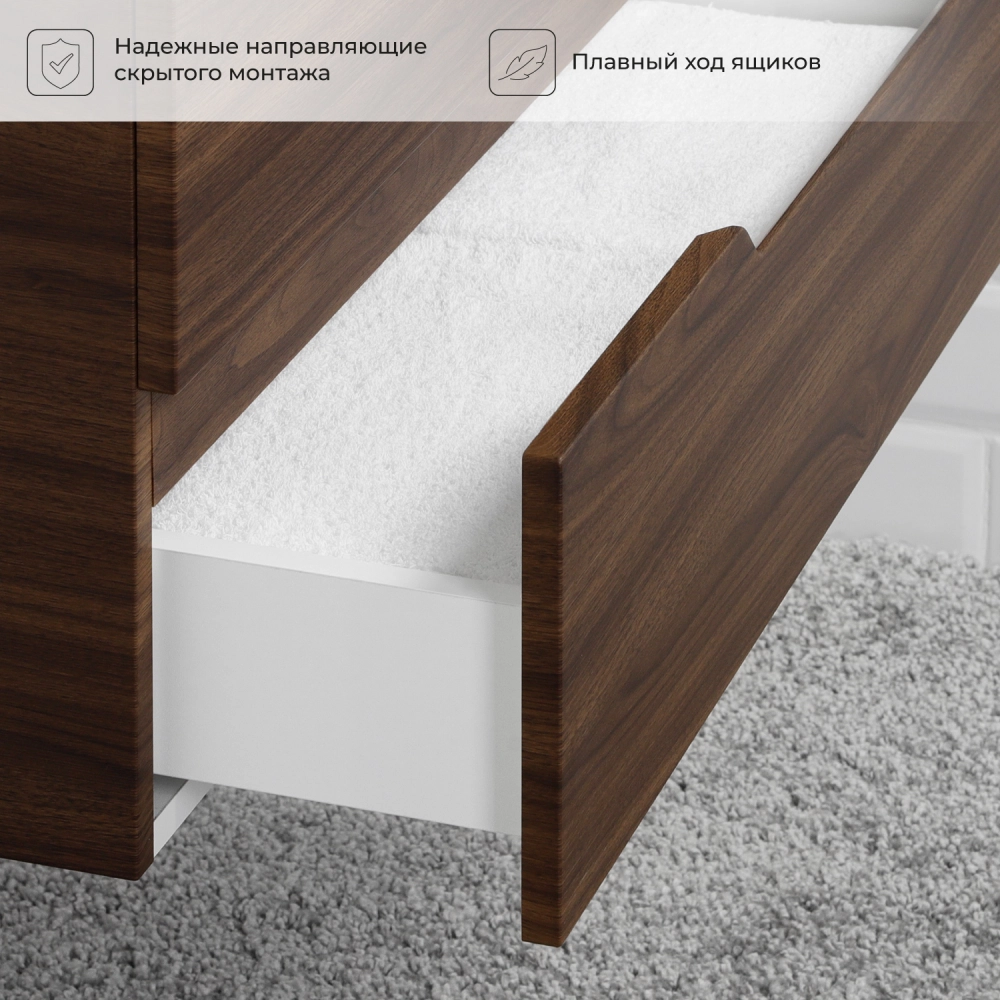 Тумба под раковину подвесная Итана Alexa 100 с выдвижными ящиками Орех Пекан шоколад стронг