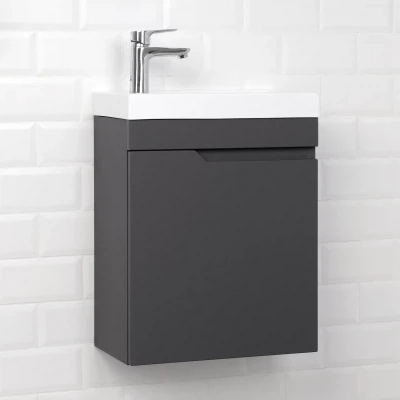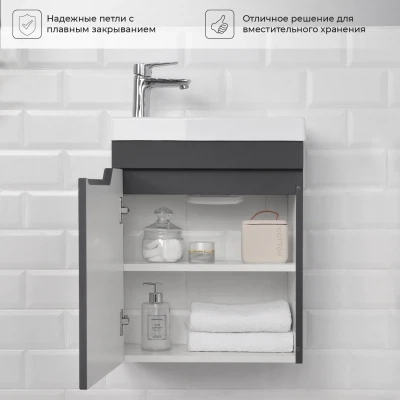 Тумба под раковину подвесная Итана Alexa 45 с распашной дверцей левая узкая Графит
