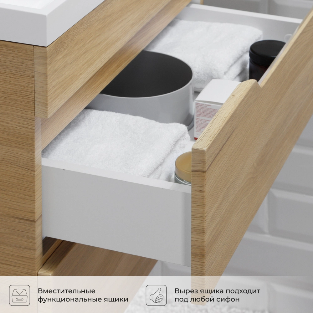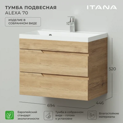 Тумба под раковину подвесная Итана Alexa 70 с выдвижными ящиками Дуб Мавелла Голд