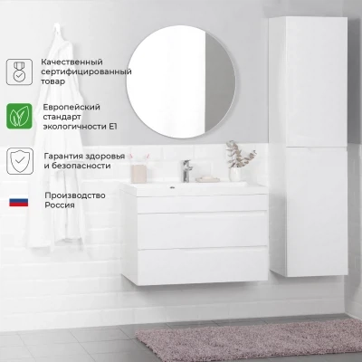 Тумба под раковину подвесная Итана Alexa 80 с выдвижными ящиками Белый глянец
