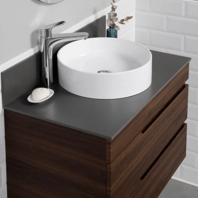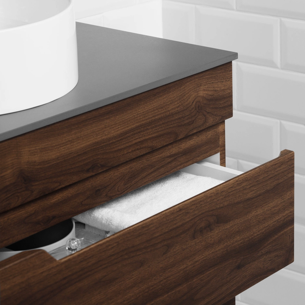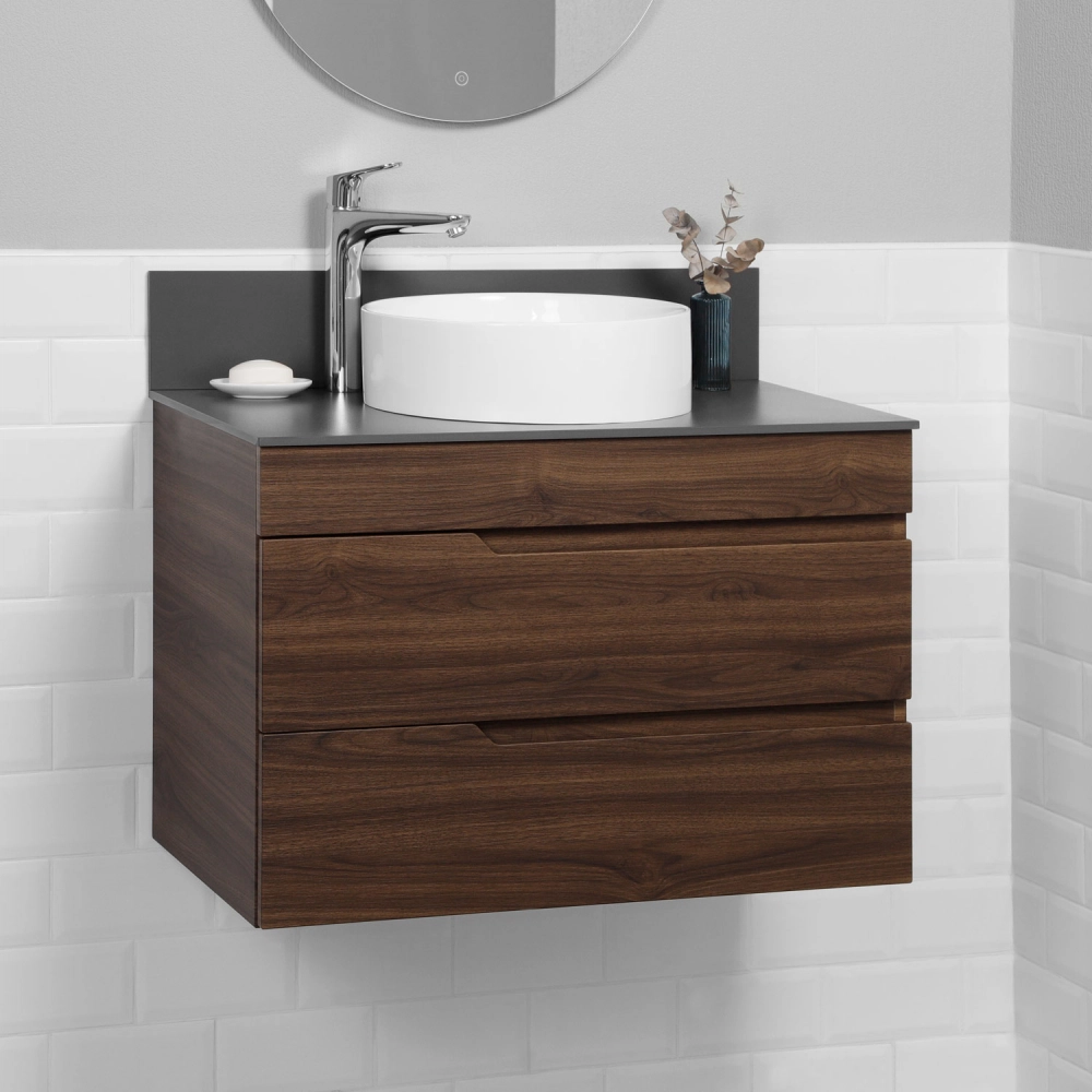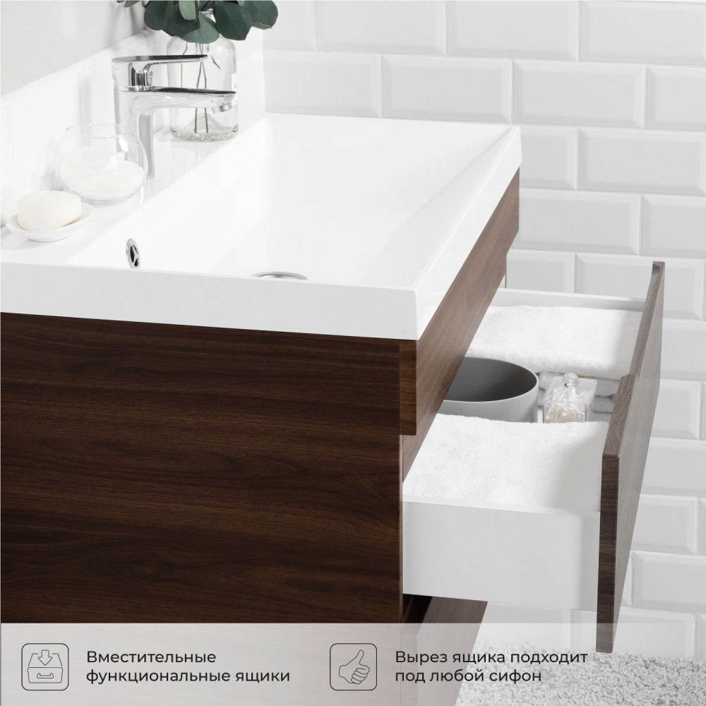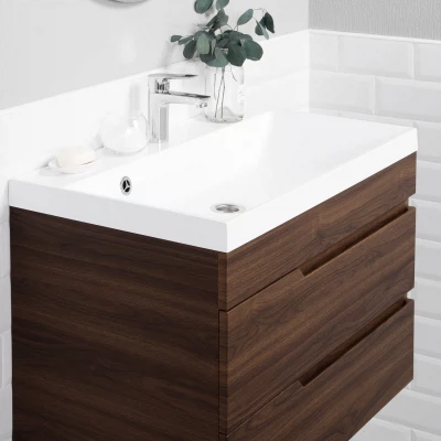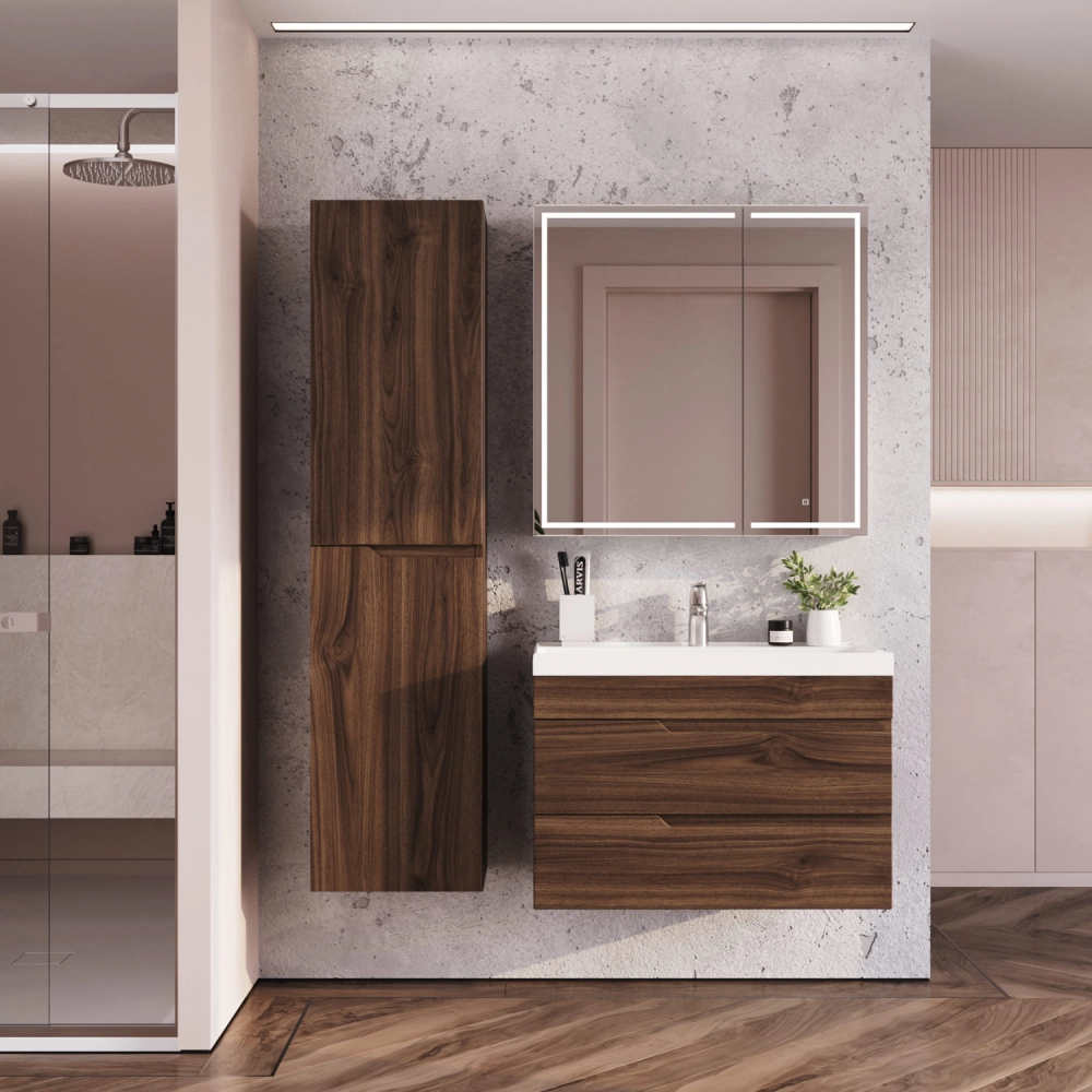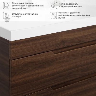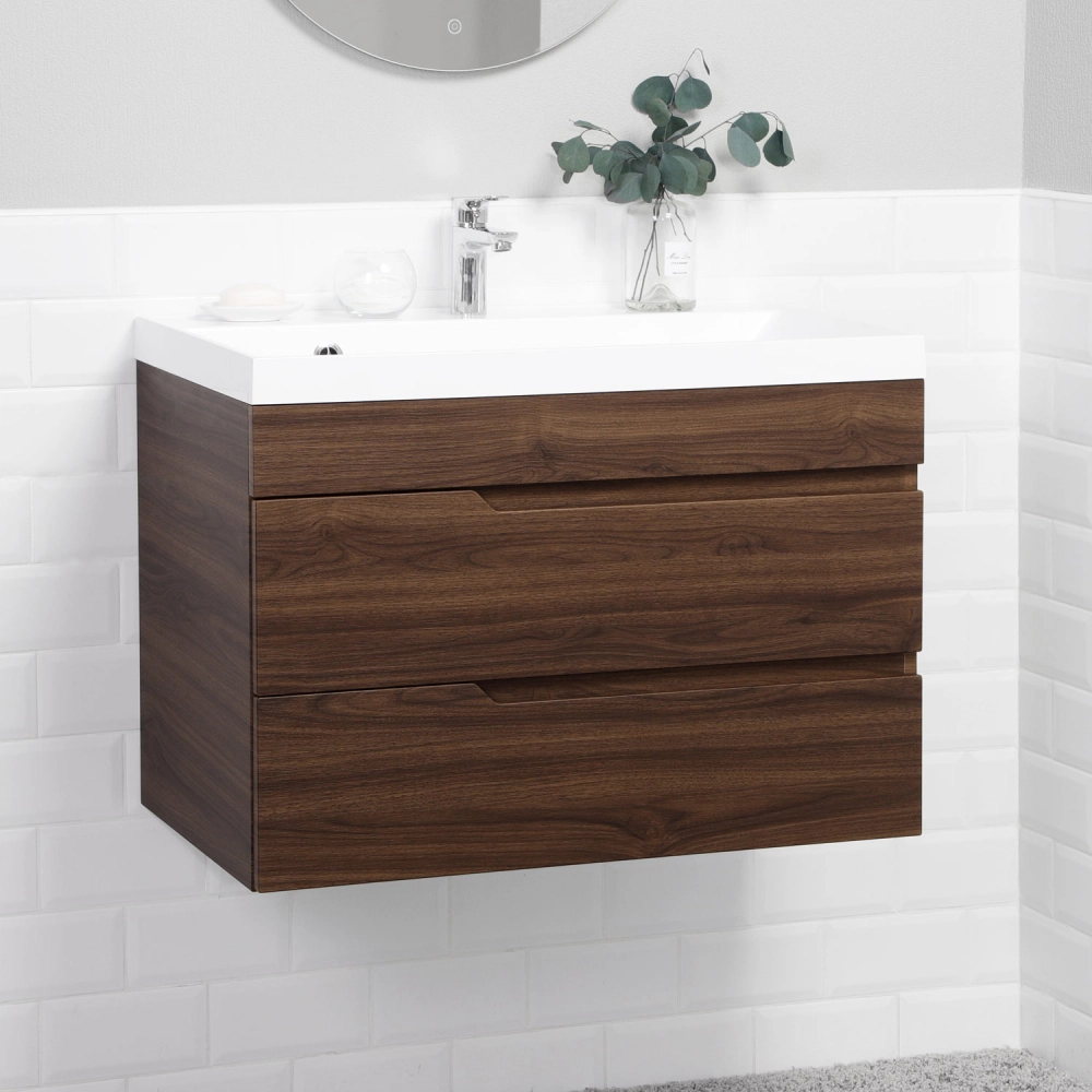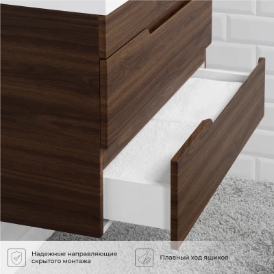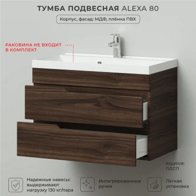 Тумба под раковину подвесная Итана Alexa 80 с выдвижными ящиками Орех Пекан шоколад стронг