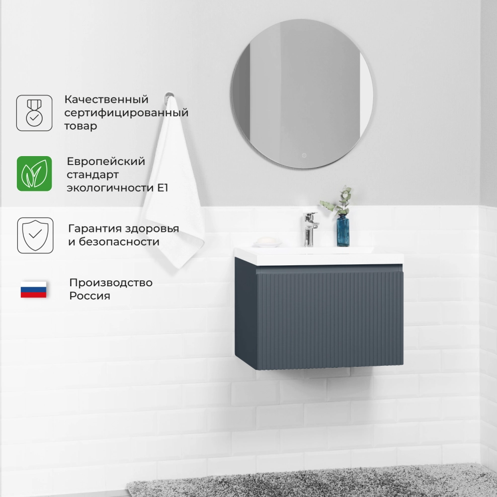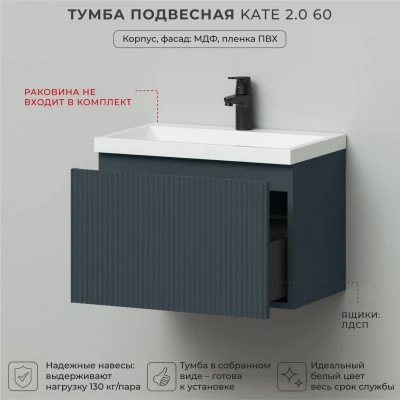 Тумба под раковину подвесная Итана Kate 2.0 60 с выдвижным ящиком Антрацит