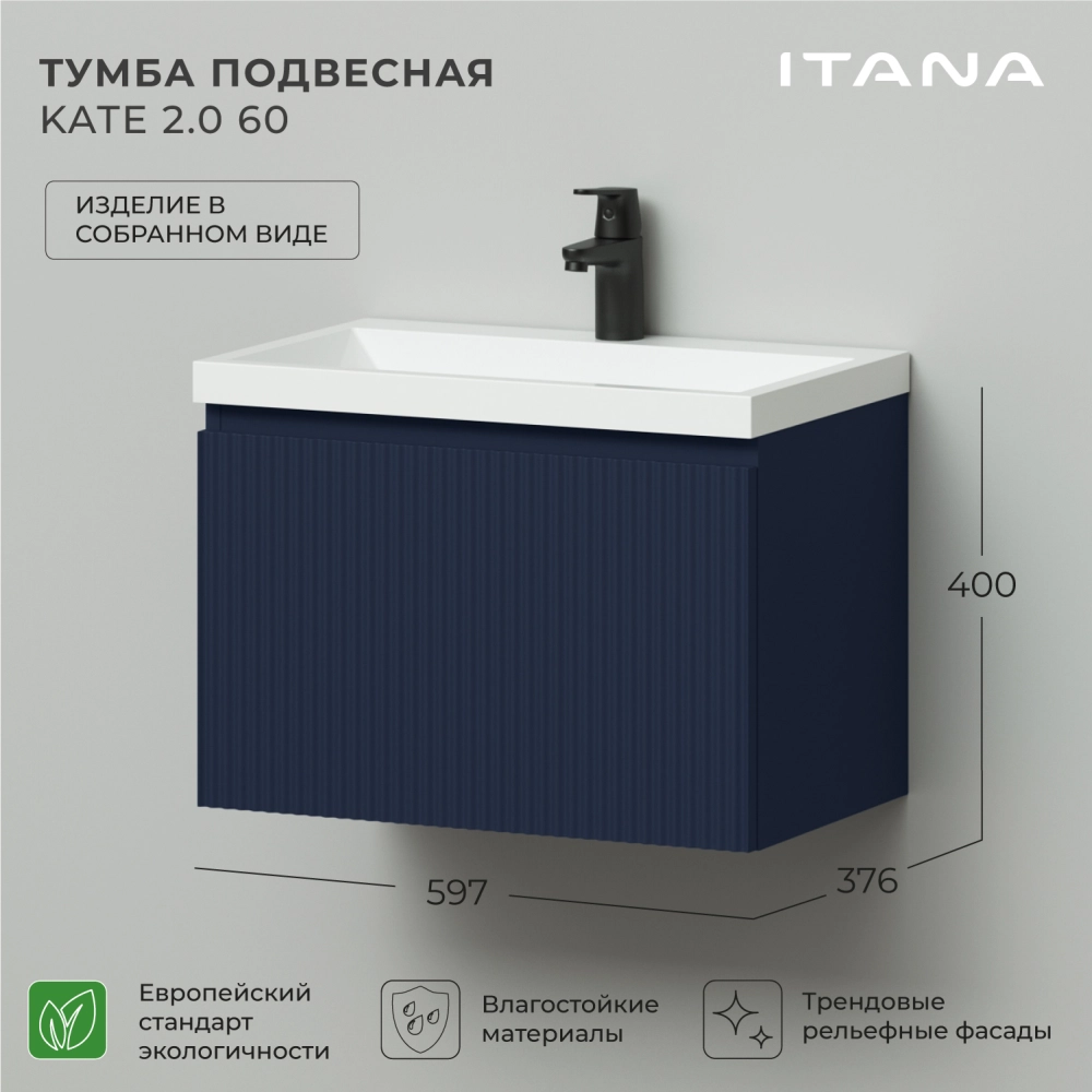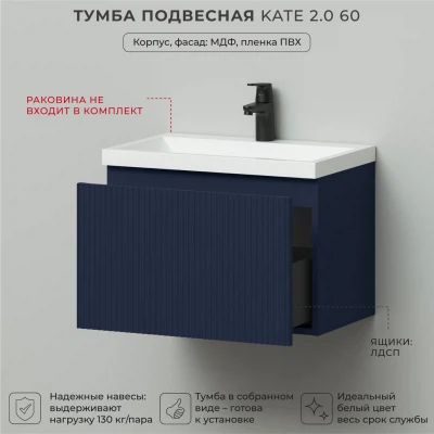 Тумба под раковину подвесная Итана Kate 2.0 60 с выдвижным ящиком Океания