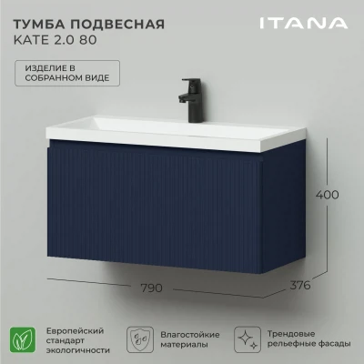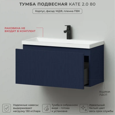 Тумба под раковину подвесная Итана Kate 2.0 80 с выдвижным ящиком Океания