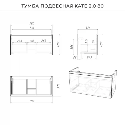 Подвесная тумба под раковину из коллекции Kate станет настоящим украшением ванной комнаты в современном стиле. Навесной способ установки тумбы в ванную дает возможность не только визуально увеличить пространство, но и обеспечивает быстрый и удобный доступ для уборки. Размеры подвесной тумбы под раковину 790*376*440 - идеальный выбор для ванной комнаты или туалета. Тумба для ванны изготовлена из МДФ и покрыта ПВХ пленкой, поэтому выдерживает высокие эксплуатационные нагрузки. Качественная фурнитура с доводчиками обеспечивает легкое открывание и плавное закрывание ящиков. Вырез под сифон универсальный, для любого типа. Благодаря своей конструкции тумба обеспечивает удобный доступ к раковине и позволяет скрыть коммуникации. Тумба под раковину в ванную оснащена удобным ящиком для хранения, что позволяет разместить всё необходимое под рукой. Для точного выбора тумбы под раковину в ванную комнату рекомендуем обратиться к схеме замеров, которая находится на фото в карточке товара, размеры изделия могут отличаться +/-1 см в связи со спецификой производства. Тумба для ванной доставляется в предварительно собранном виде, надежно упакована.