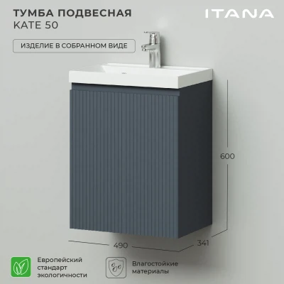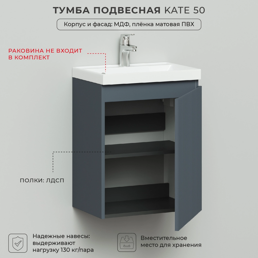 Тумба под раковину подвесная Итана Kate 50 с распашной дверцей правая Антрацит