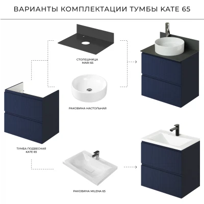 Тумба под раковину подвесная Итана Kate 65 с выдвижными ящиками Океания