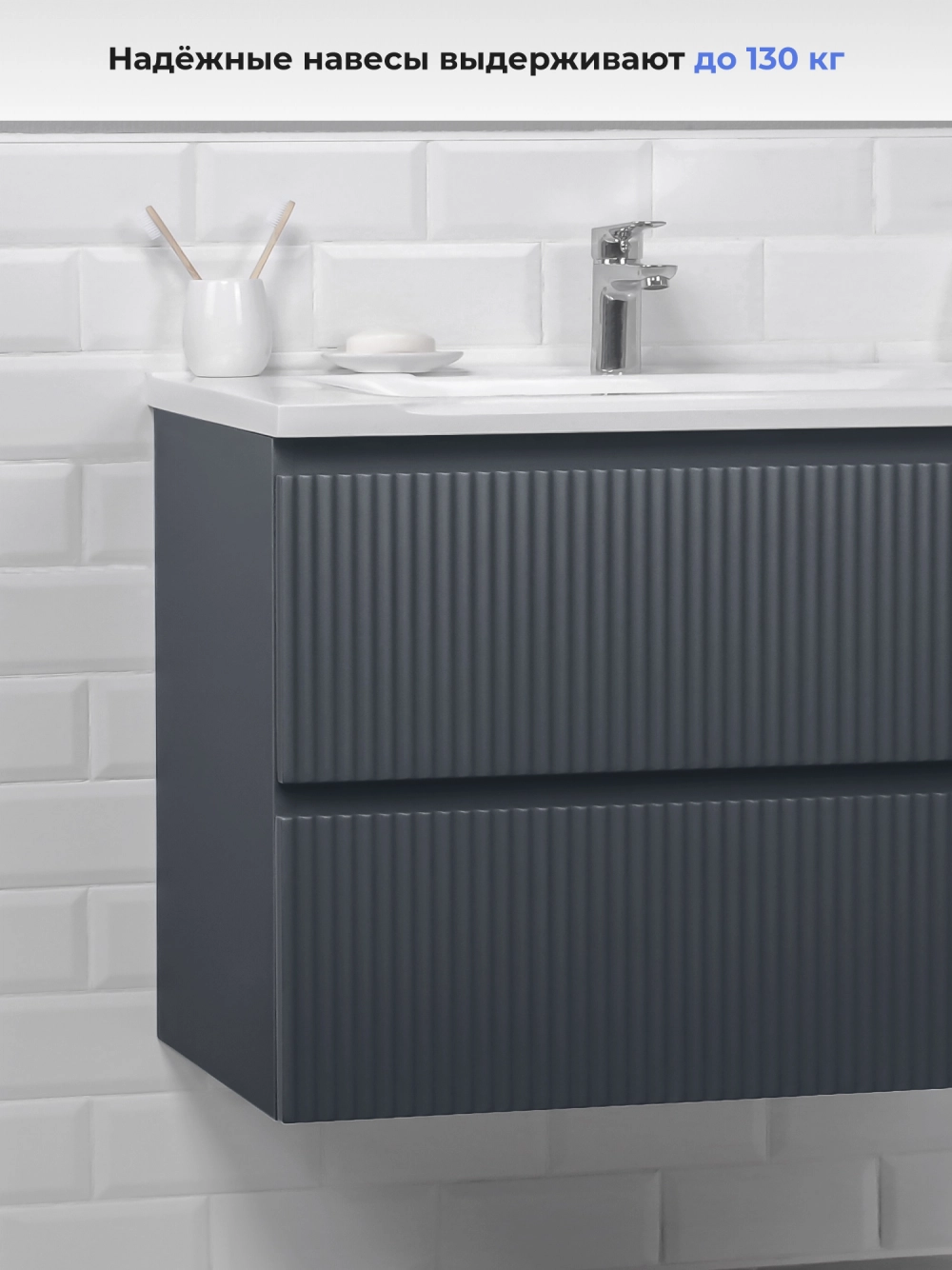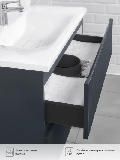 Тумба под раковину подвесная Итана Kate 90 с выдвижными ящиками Антрацит