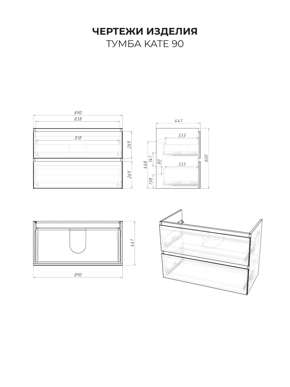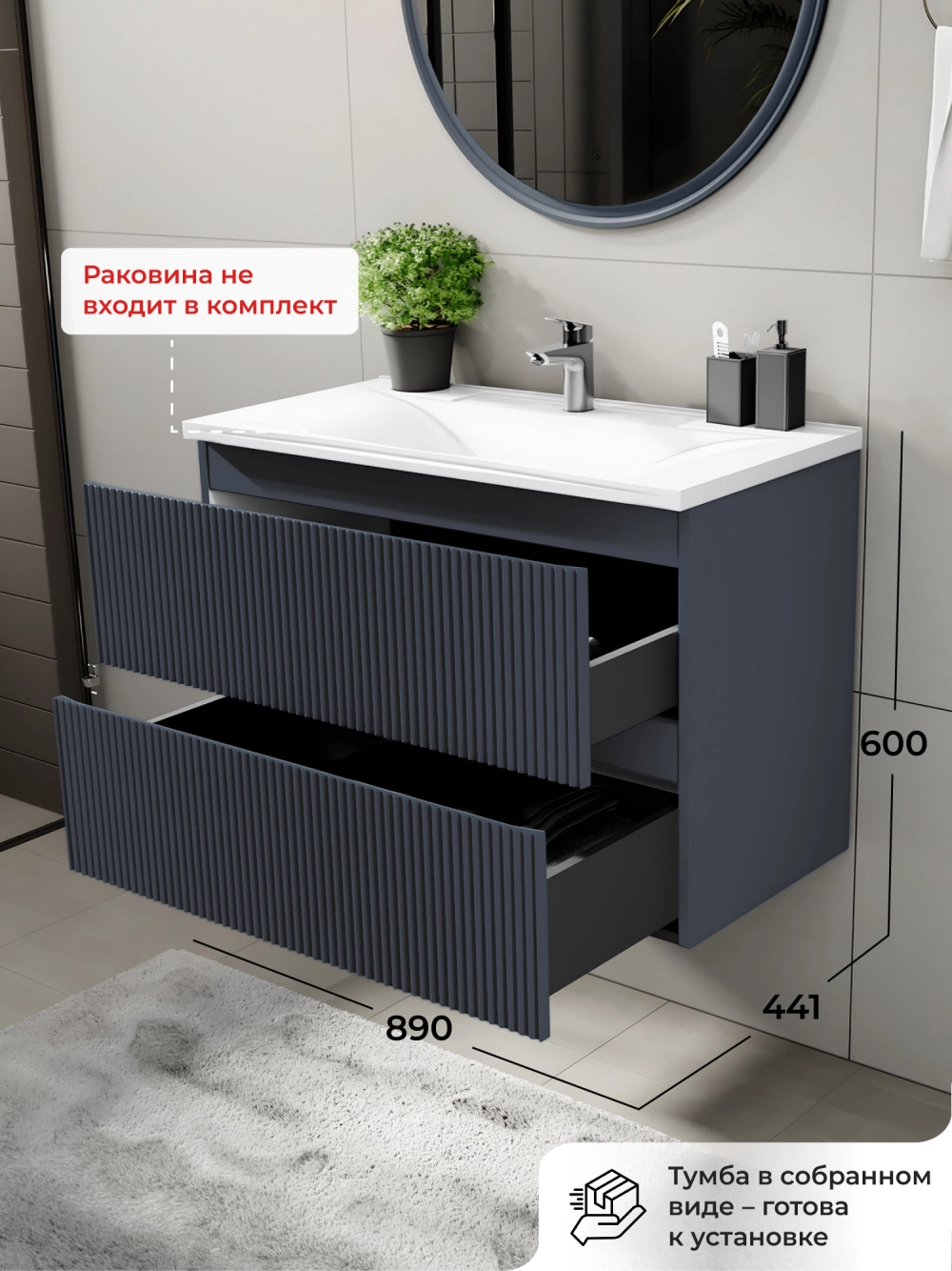 Подвесная тумба под раковину из коллекции Kate станет настоящим украшением ванной комнаты в современном стиле. Навесной способ установки тумбы в ванную дает возможность не только визуально увеличить пространство, но и обеспечивает быстрый и удобный доступ для уборки. Размеры подвесной тумбы под раковину 890*441*600 - идеальный выбор для ванной комнаты или туалета. Тумба для ванны изготовлена из МДФ и покрыта ПВХ пленкой, поэтому выдерживает высокие эксплуатационные нагрузки. Качественная фурнитура с доводчиками обеспечивает легкое открывание и плавное закрывание ящиков. Вырез под сифон универсальный, для любого типа. Благодаря своей конструкции тумба обеспечивает удобный доступ к раковине и позволяет скрыть коммуникации. Тумба под раковину в ванную оснащена двумя удобными ящиками для хранения, что позволяет разместить всё необходимое под рукой. Для точного выбора тумбы под раковину в ванную комнату рекомендуем обратиться к схеме замеров, которая находится на фото в карточке товара, размеры изделия могут отличаться +/-1 см в связи со спецификой производства. Тумба для ванной доставляется в предварительно собранном виде, надежно упакована.