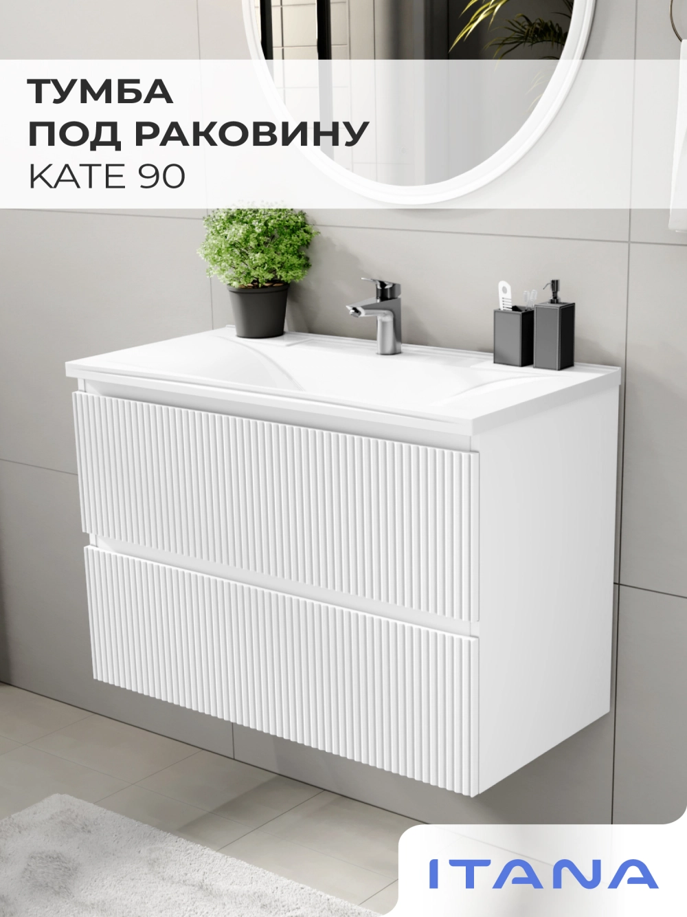 Тумба под раковину подвесная Итана Kate 90 с выдвижными ящиками Бланж
