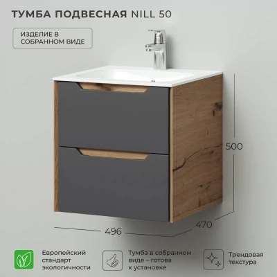 Тумба под раковину подвесная Итана Nill 50 с выдвижными ящиками Графит