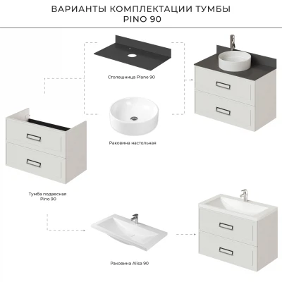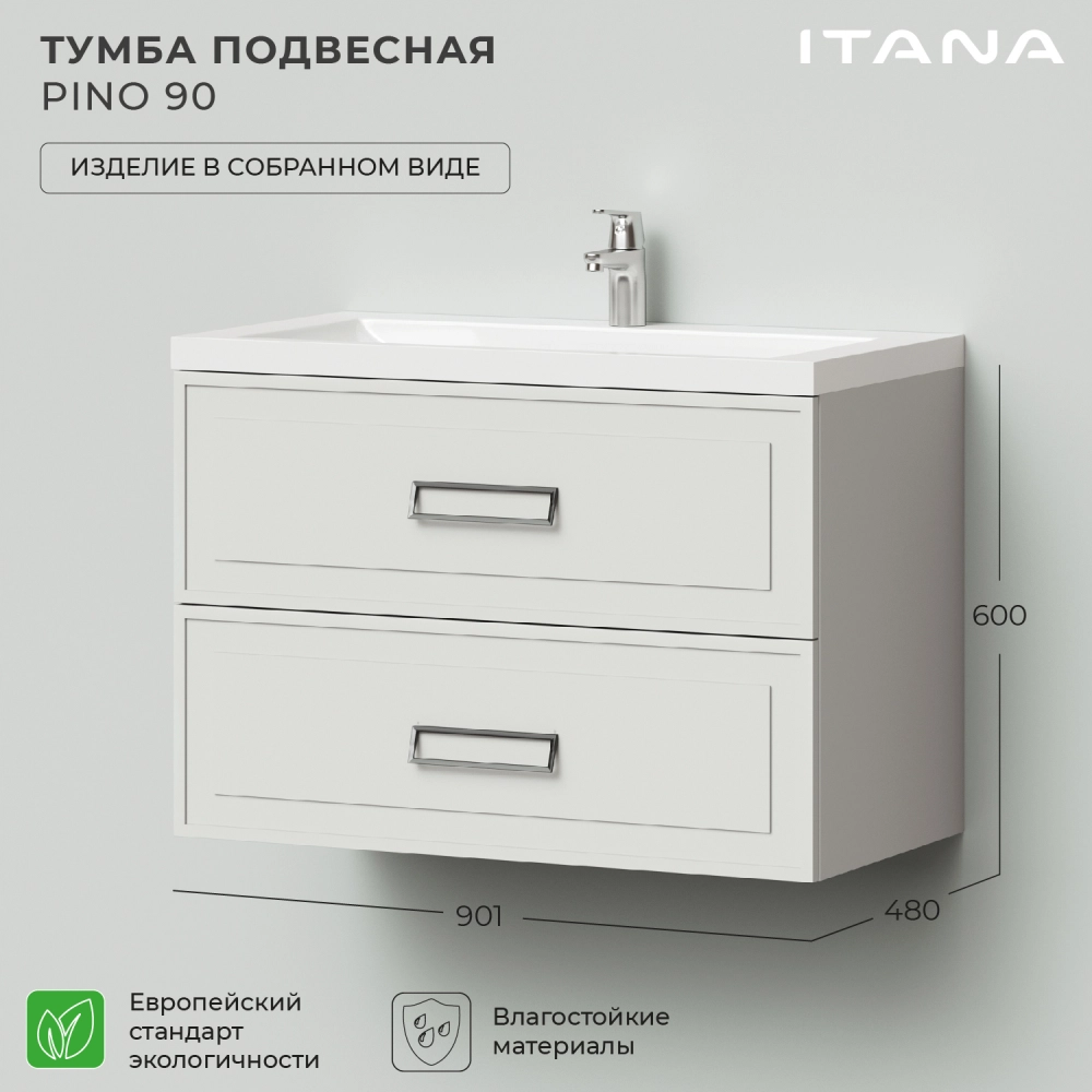 Тумба под раковину подвесная Итана Pino 90 с выдвижными ящиками Керамик