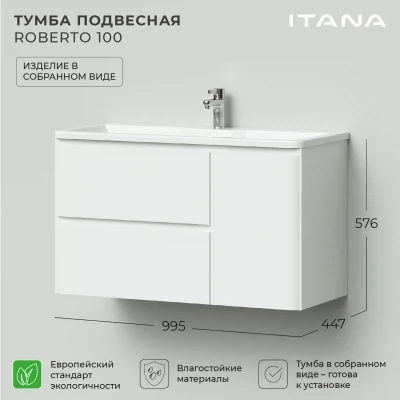 Тумба под раковину подвесная Итана Roberto 100 с выдвижными ящиками Эмаль Белый Глянец