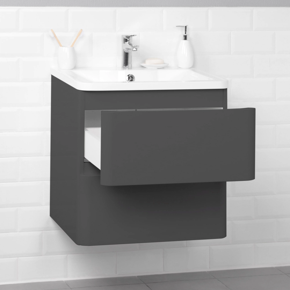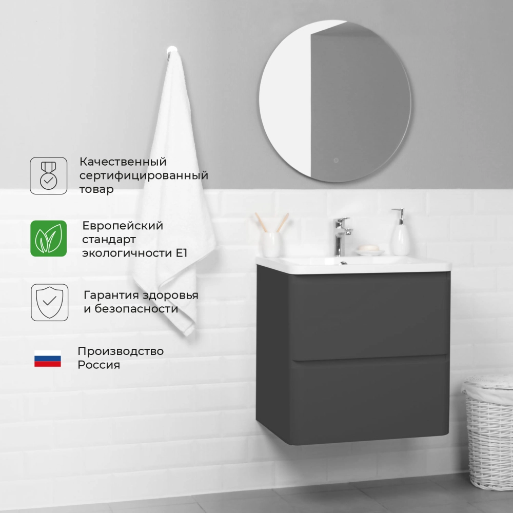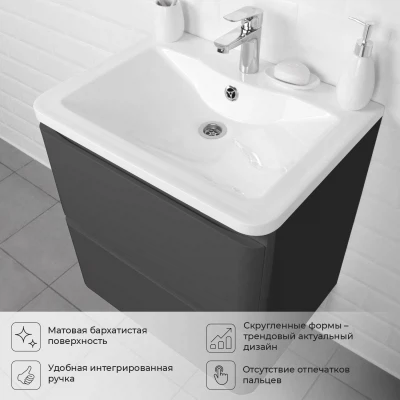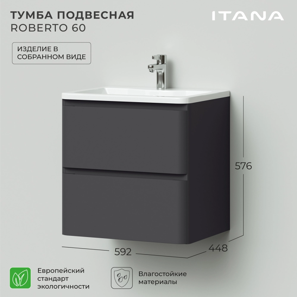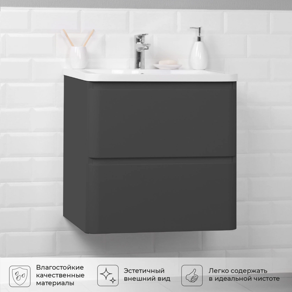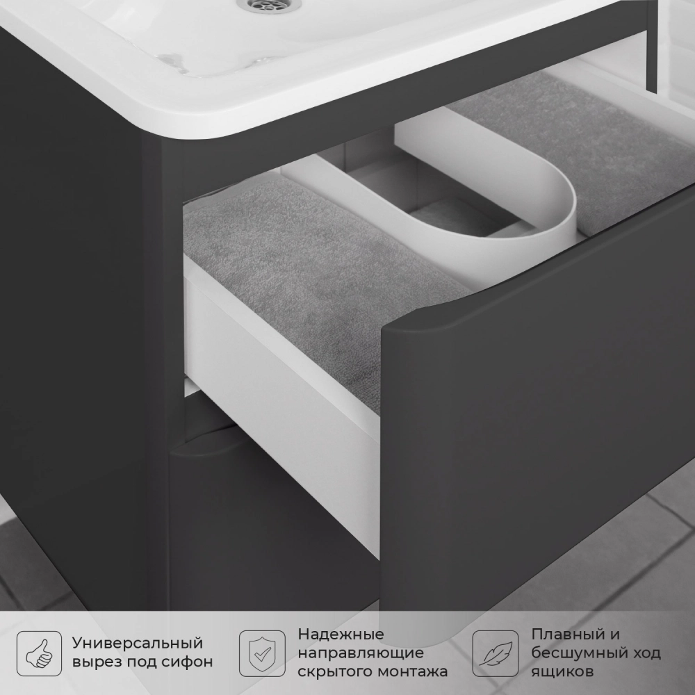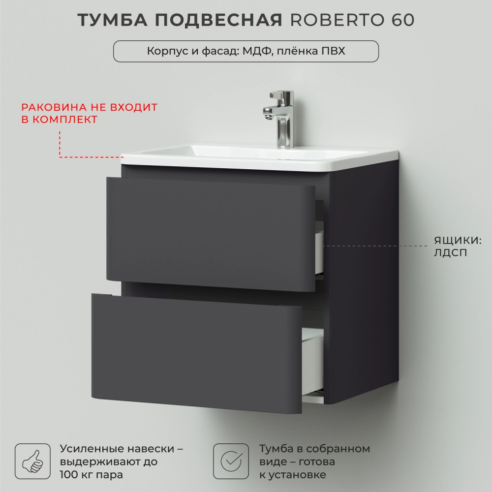 Тумба под раковину подвесная Итана Roberto 60 с выдвижными ящиками Графит