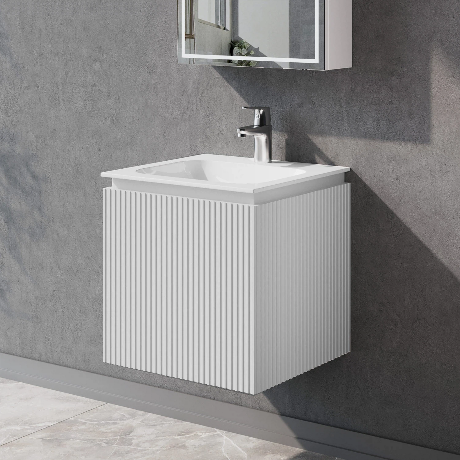 Тумба под раковину подвесная левая Итана BAND 50 с распашной дверцей Белый матовый Soft touch