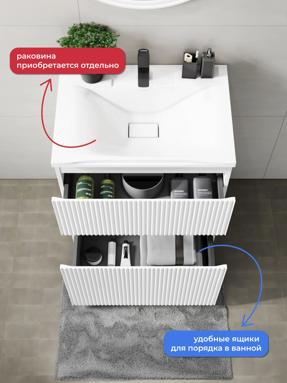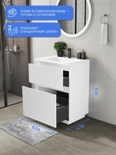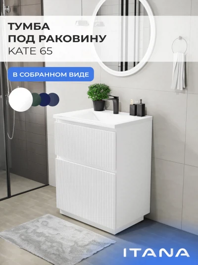 КаталогТумбы под раковинуТумба под раковину в ванную напольная Итана Kate 65 с выдвижными ящиками Бланж