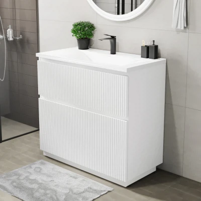 КаталогТумбы под раковинуТумба под раковину в ванную напольная Итана Kate 90 с выдвижными ящиками Бланж