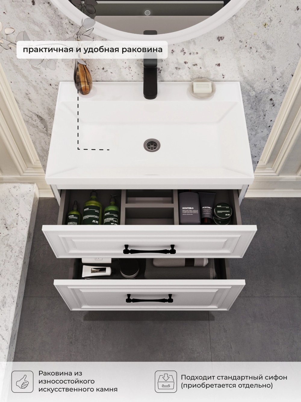 Тумба с раковиной Итана Verona 2.0 70 с выдвижными ящиками Керамик