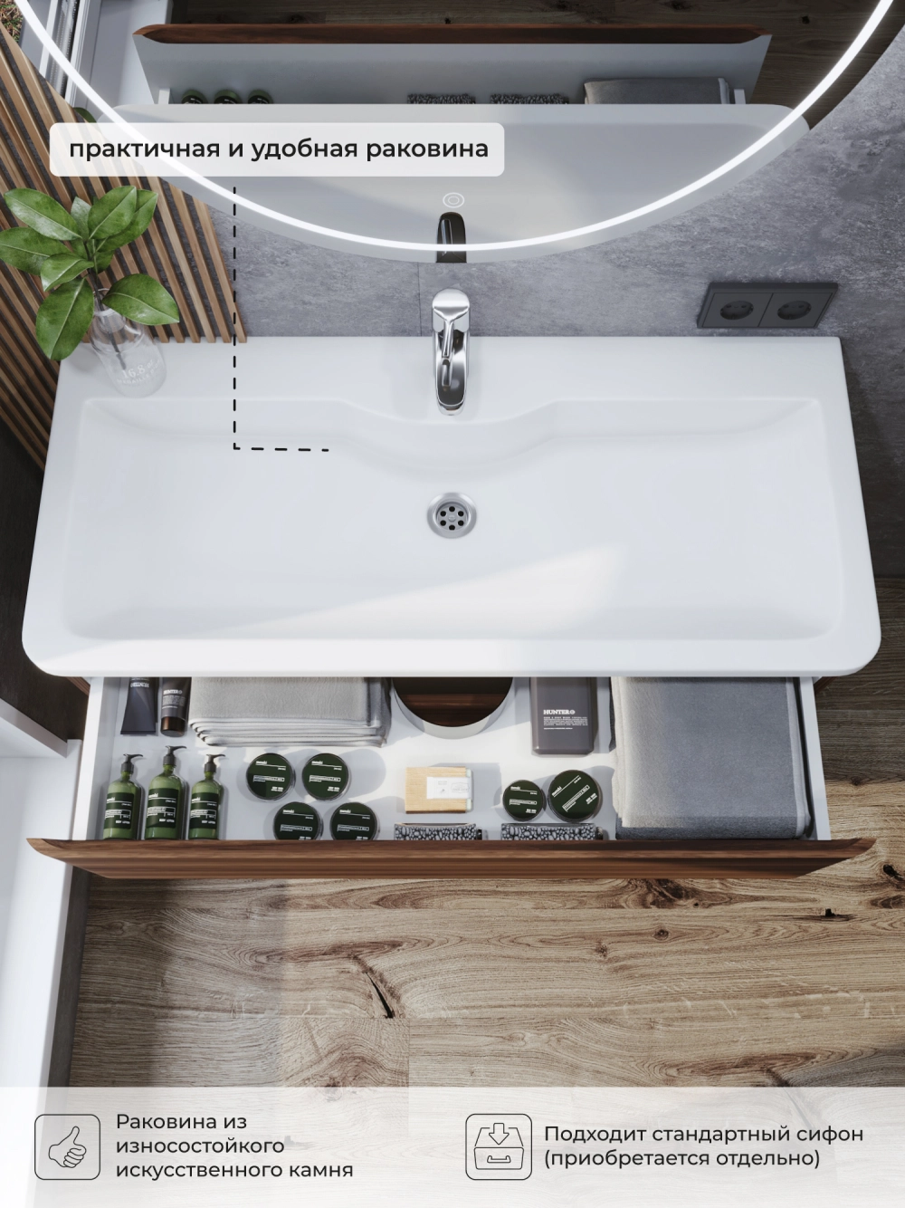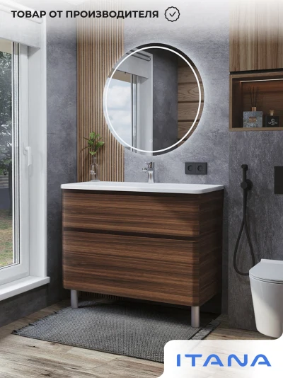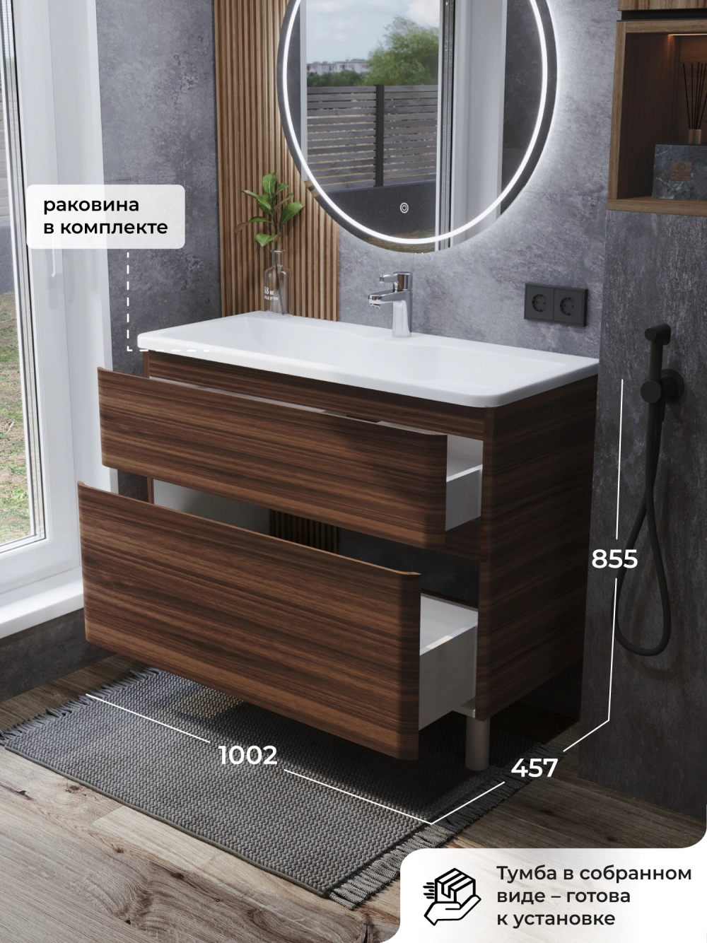 Тумба с раковиной напольная Итана Roberto 100 с выдвижными ящиками Орех Пекан шоколад стронг