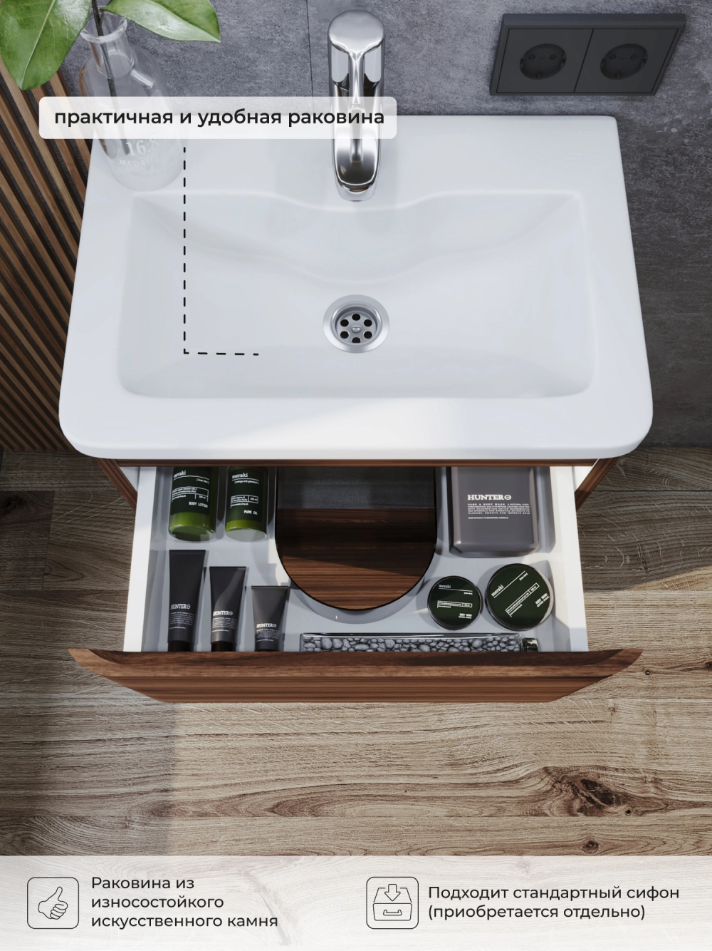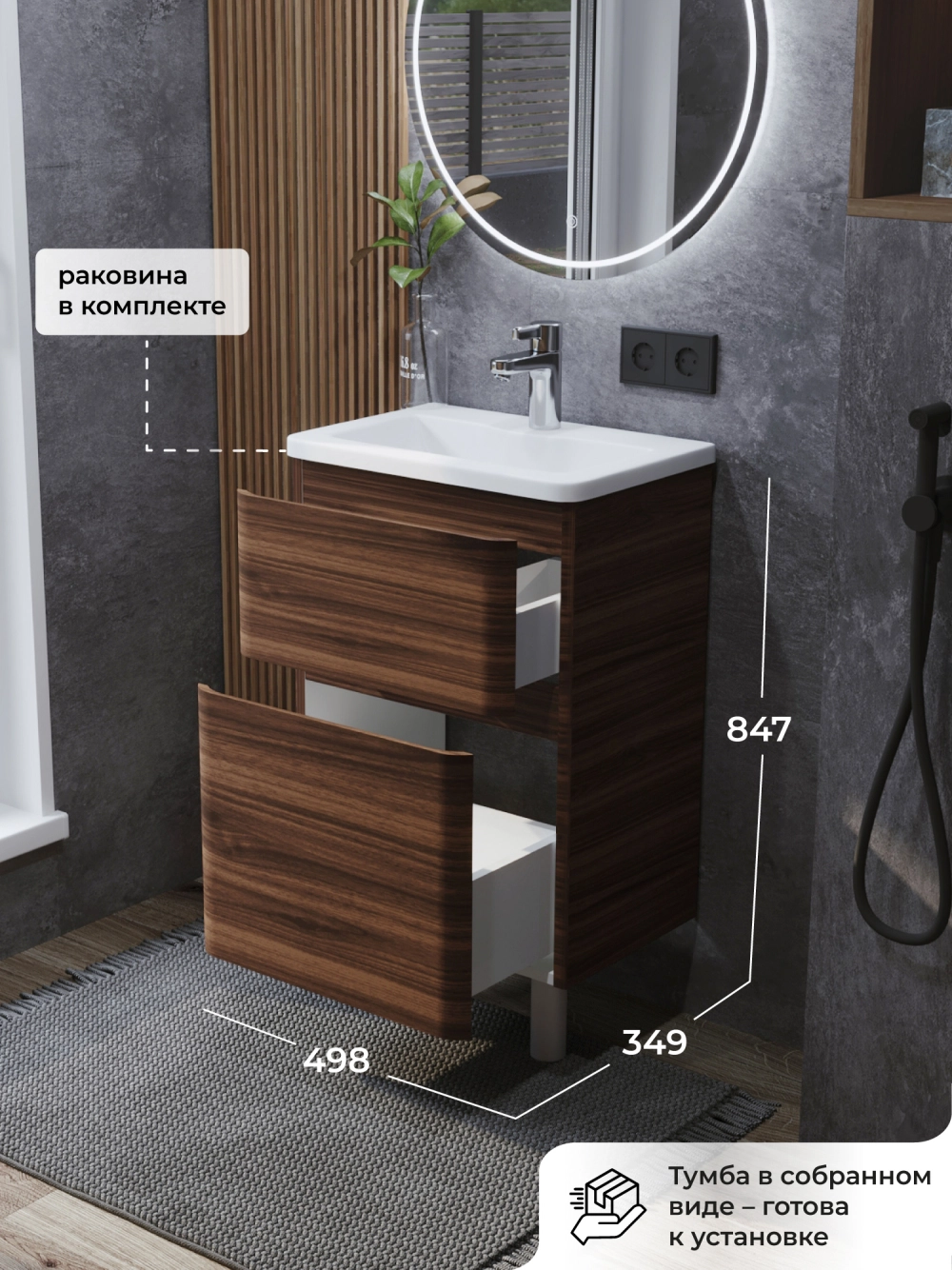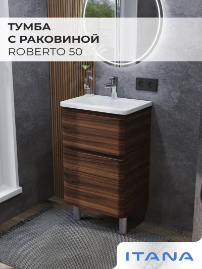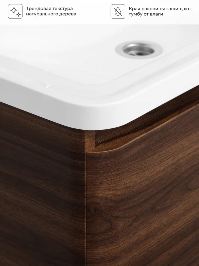 Тумба с раковиной напольная Итана Roberto 50 с выдвижными ящиками Орех Пекан шоколад стронг